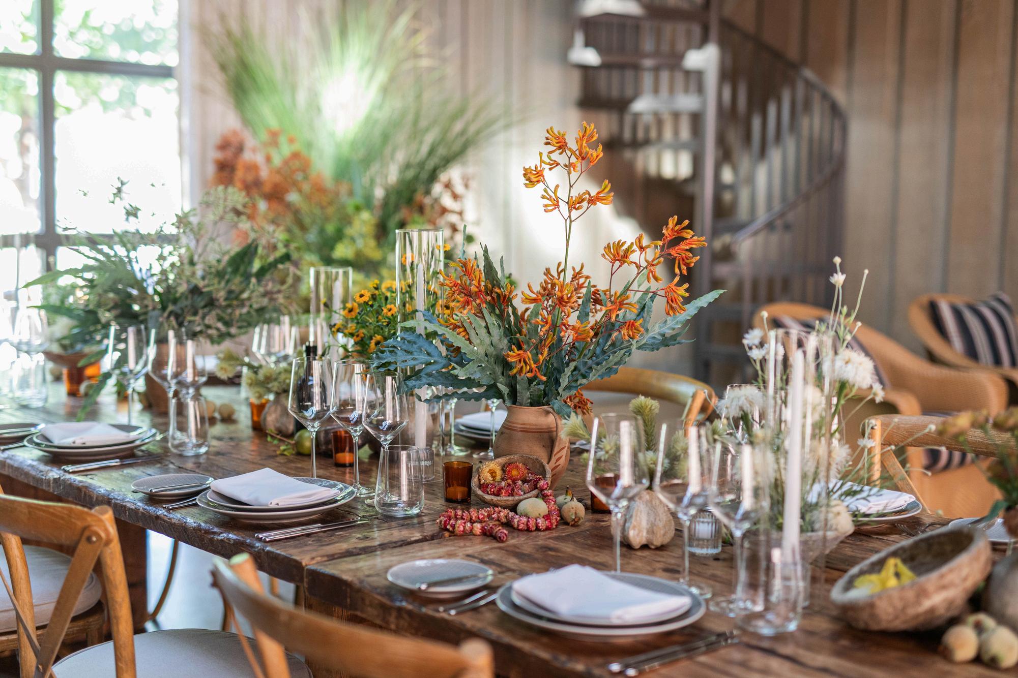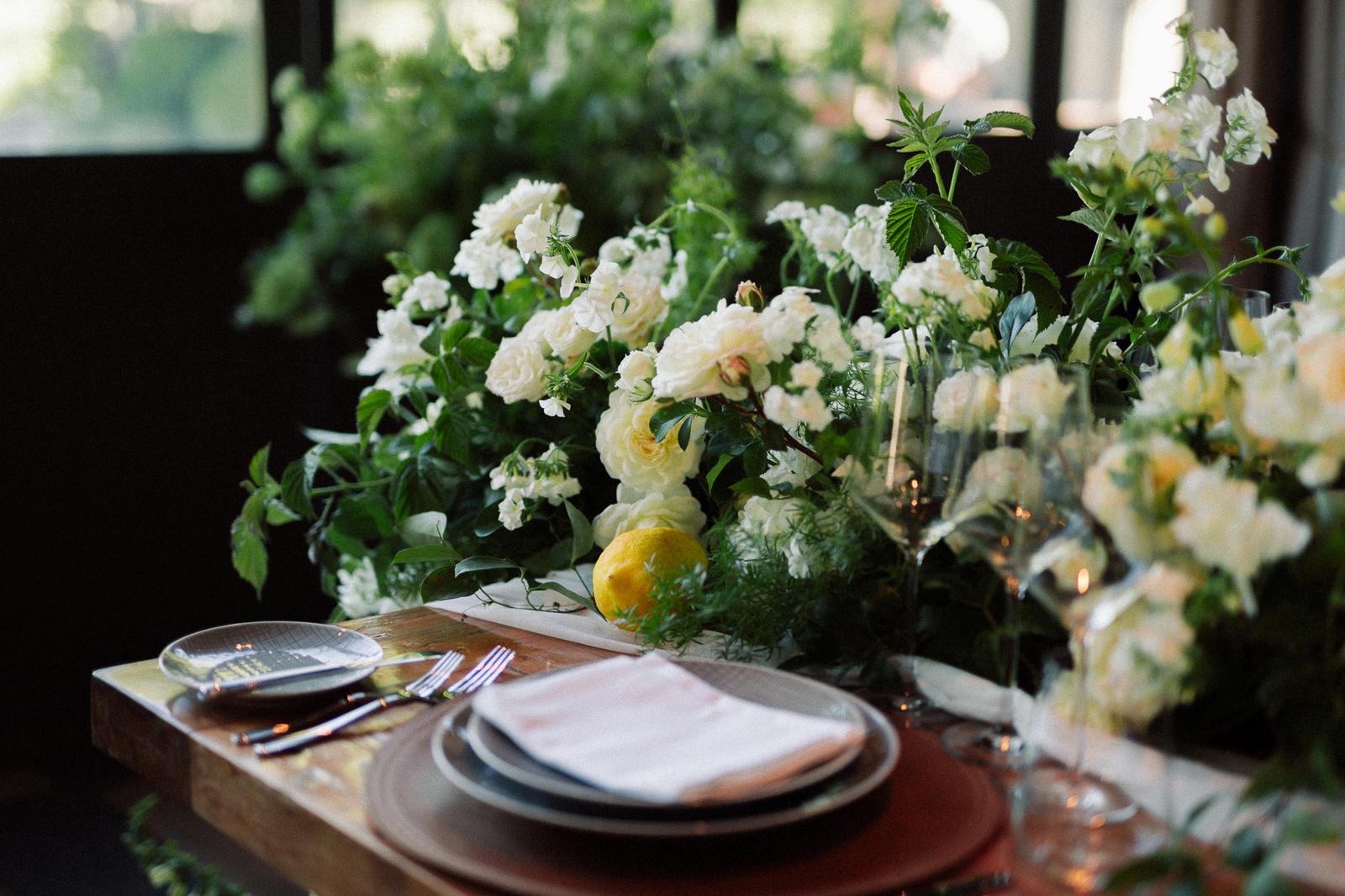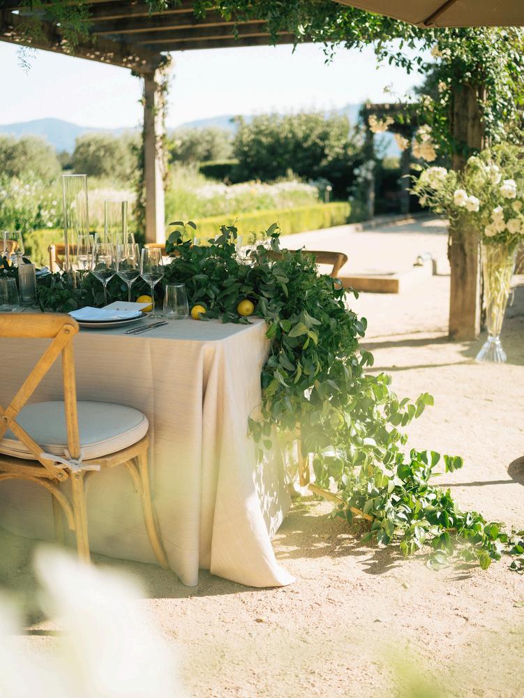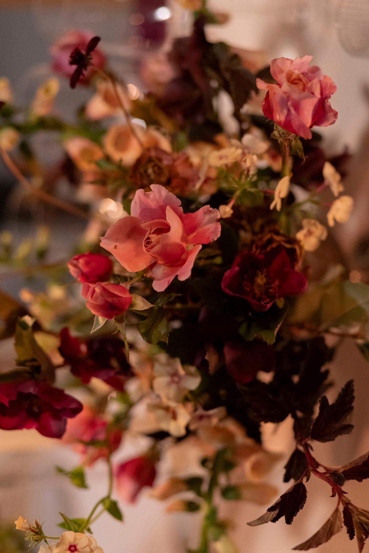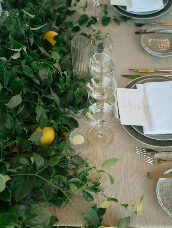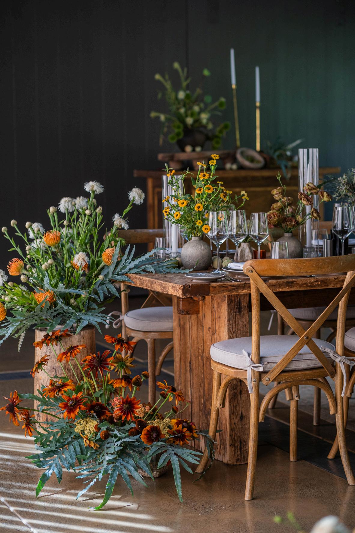 Cascading tablescape design to create a dramatic flow of vines and flowers