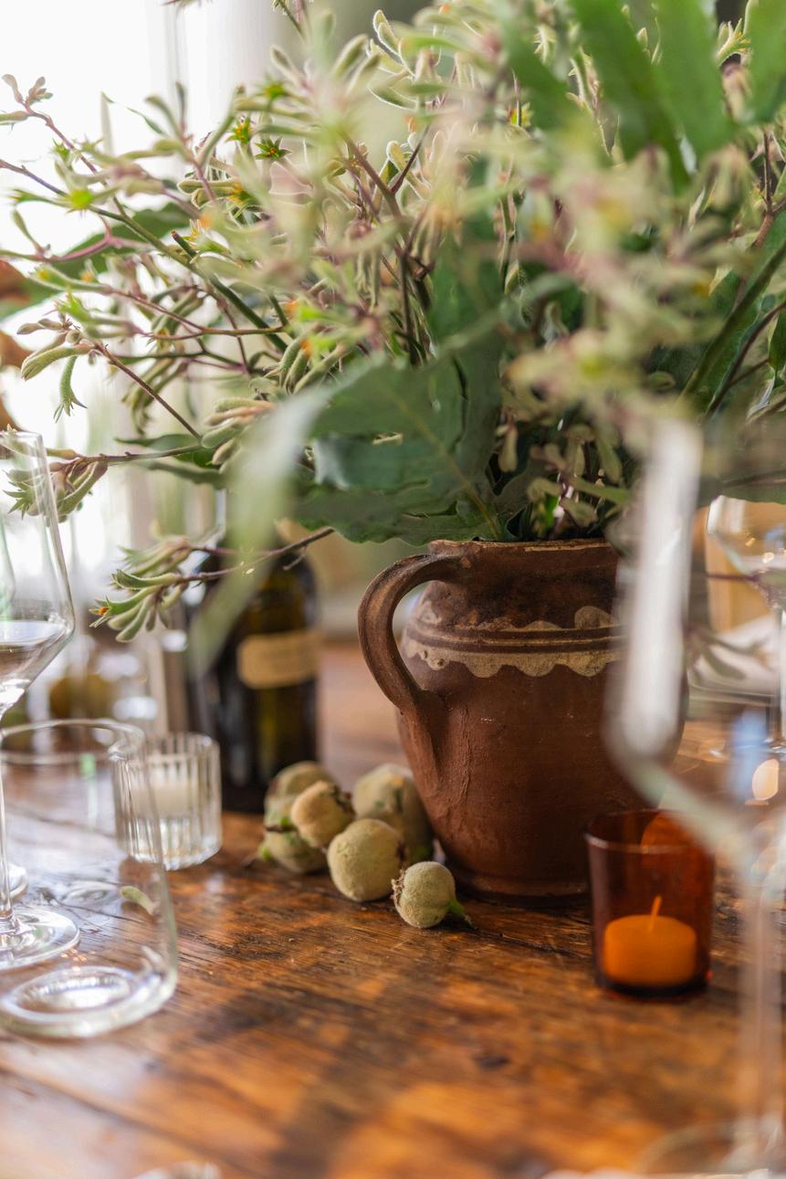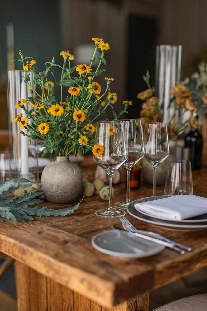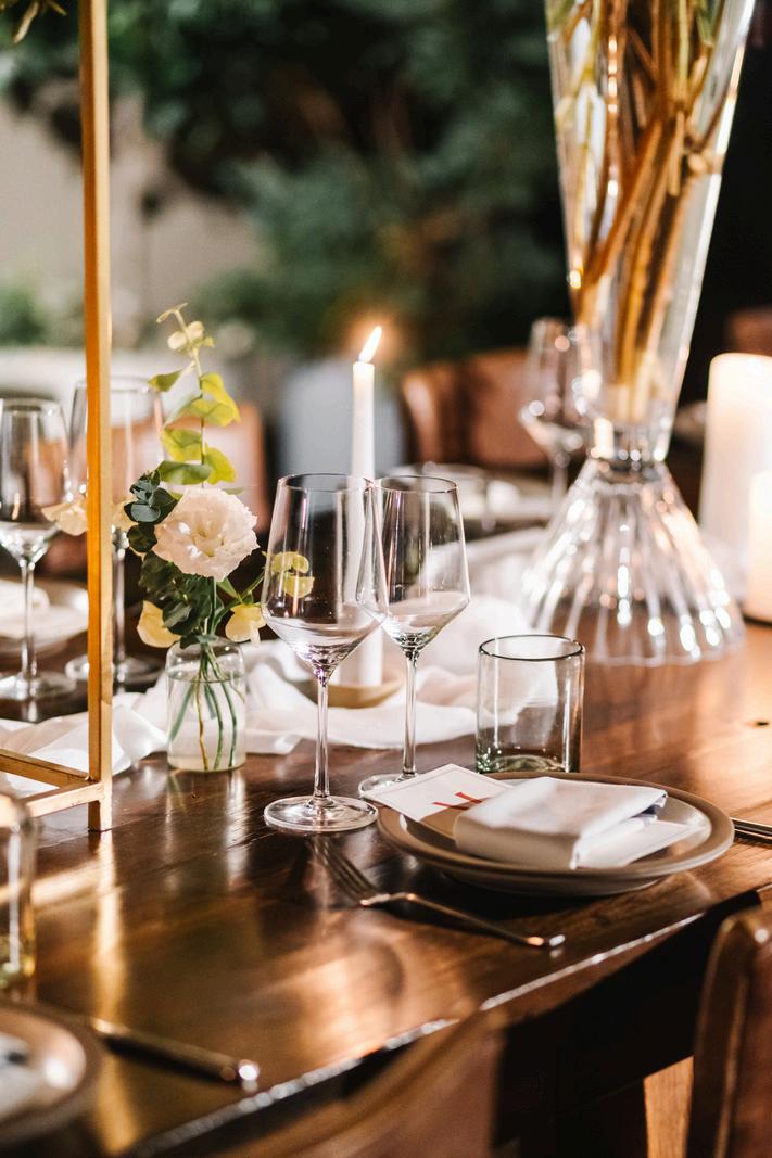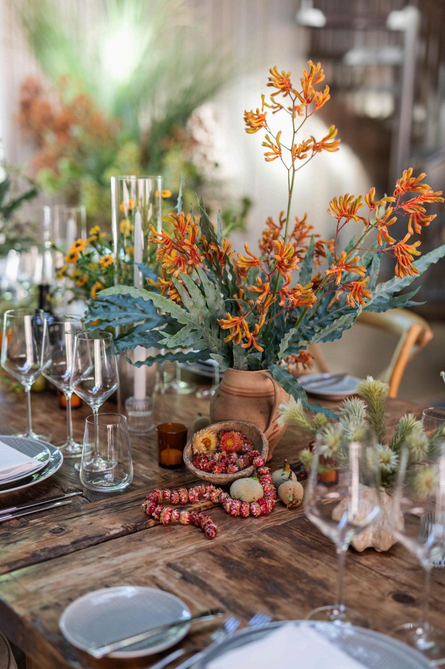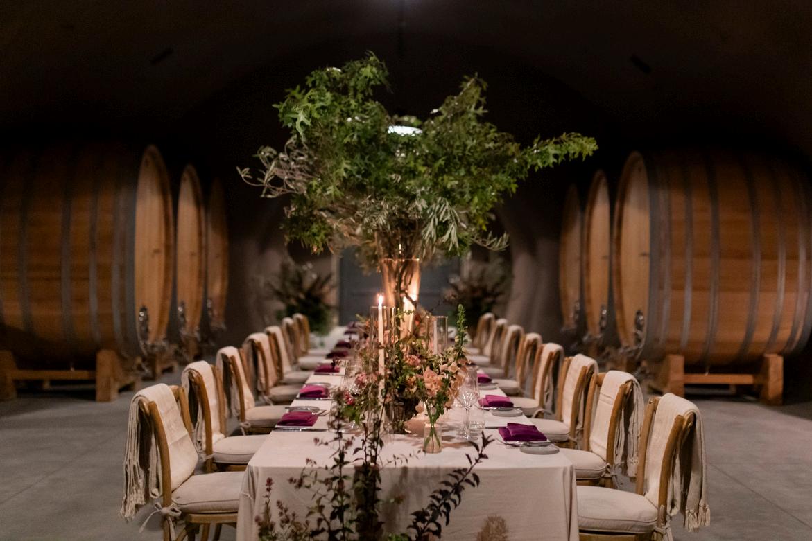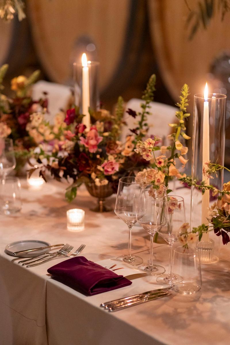 Cascading tablescape design to create a dramatic flow of vines and flowers