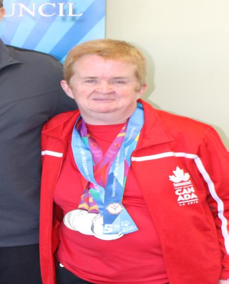 Mary Jean Lawson has been swimming with the Special Olympics for over 25 years. In 2014, at Nationals, Mary Jean had a great performances, placing first in the 25m free, 50m free and 50m back stroke. This earned her a spot on the Team Canada Training Squad, and she began preparing for the Special Olympics World Games to be held in Los Angeles in 2015. While training for the World Games, Mary Jean swam up to 5 times a week, and did other exercises to keep in shape. The hard work paid off, as Mary Jean swam her best ever in the 25m backstroke, winning Silver, and placing 5th in the 25m freestyle, where the difference between first place and eighth place was 3/10 of a second. Mary Jean was also recognized as Special Olympics Alberta Female Athlete of the Year, for proving that no matter your age, your ability or your sport, you can achieve your best.