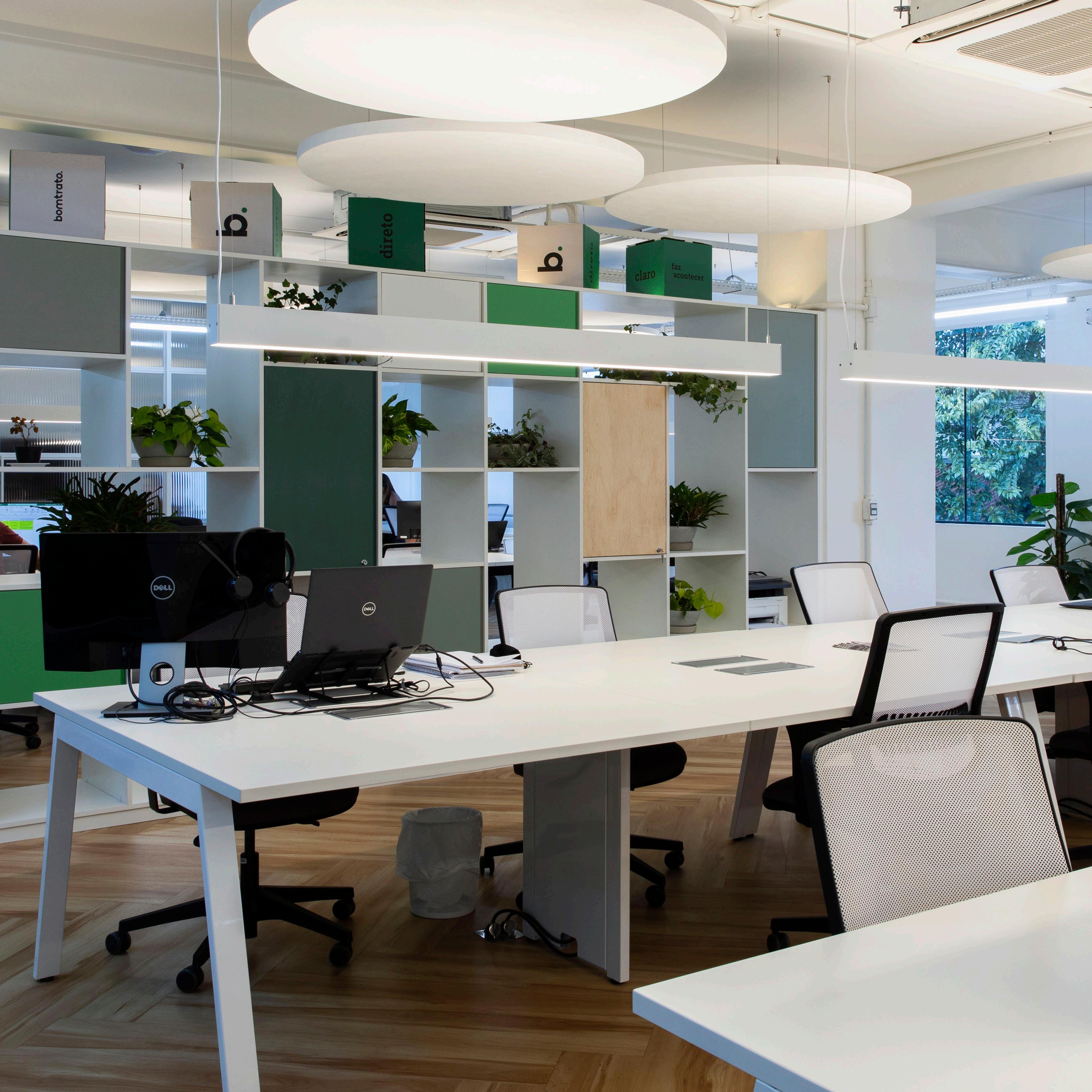 Como antes no local funcionava uma produtora de filmes, havia a presença de muitas salas escuras. O desafio do projeto foi se desfazer disso, e criar um ambiente agradável e bem iluminado para essa nova empresa que cresceu durante a pandemia. O escritório deveria ser acolhedor para que seus funcionários se sentissem atraídos e confortáveis para ir presencialmente ao escritório em um esquema híbrido de trabalho.