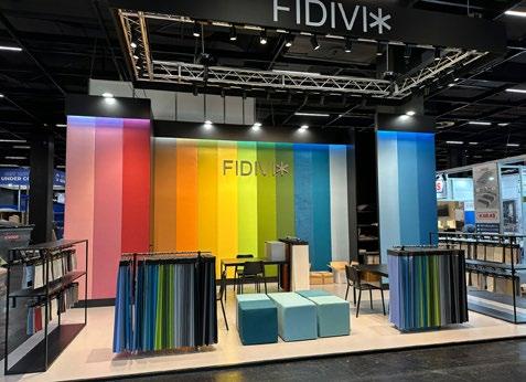 Il concept degli stand di FIDIVI* Tessitura Vergano SpA è stato progettato per esaltare il prodotto principale dell’azienda: i tessuti.
