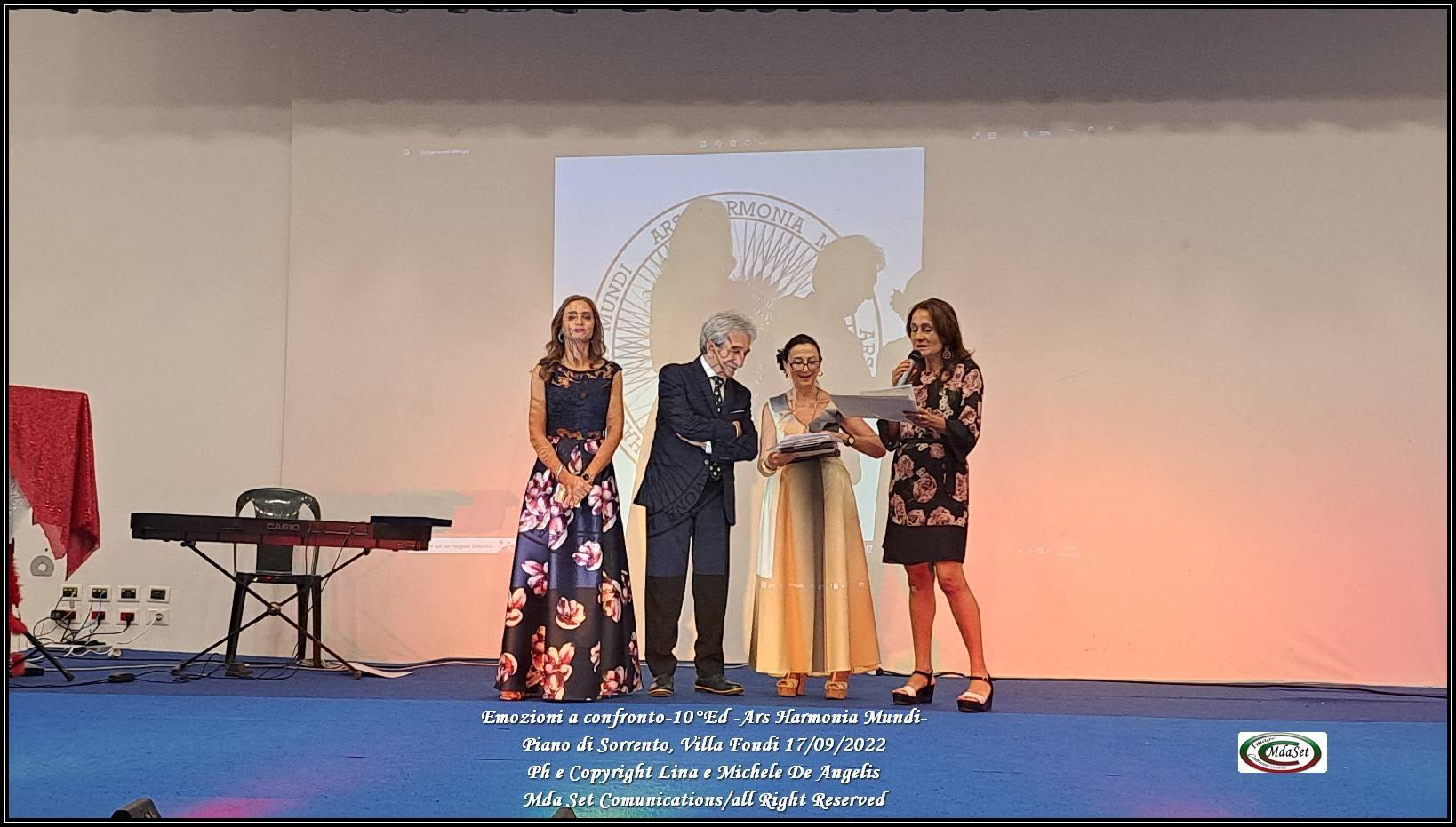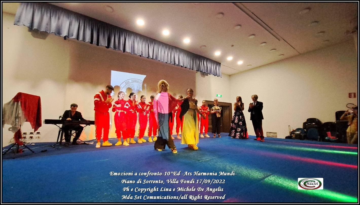 Emozioni a Confronto X Edizione” si è rivelata una kermesse matura, promossa certamente ad un livello superiore. Protagonista indiscussa, anche in questa edizione, l’Arte a 360 gradi, danza, pittura, poesia, canto, ma anche l’accento posto sul giornalismo con l’assegnazione dei Premi Ars Harmonia Mundi che hanno contribuito a fare della serata un evento unico. Un grazie va sicuramente ribadito agli artisti, all’organizzazione dell’associazione Ars Harmonia Mundi di Letizia Caiazzo, al Comune di Piano di Sorrento ed al pubblico che col suo calore ha inteso manifestare il suo gradimento.