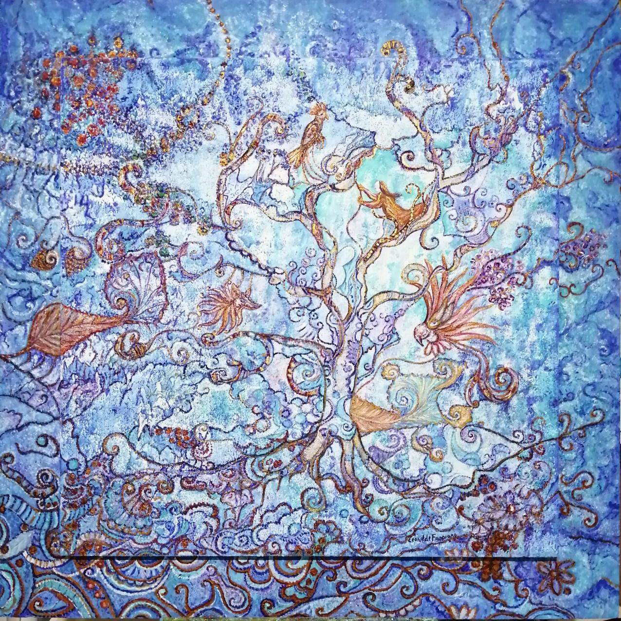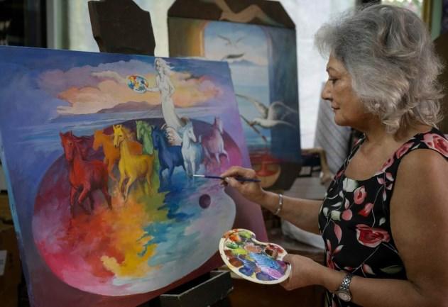 Ha attraversato vari stili e forme creative d’arte, passando dalla pittura su tela, all’iconografia su legno e oro, incidendo il legno duro dell’olivo per creare forme e racconti dell’anima