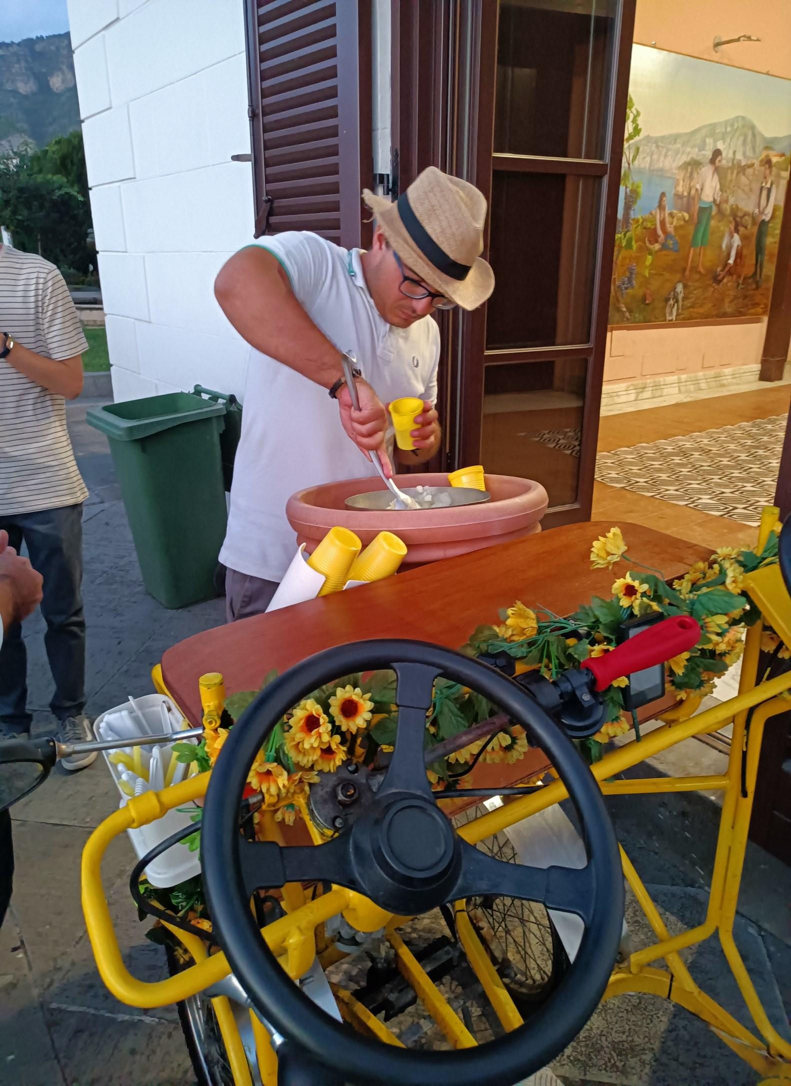La giornalista Rosaria Pannico per le interviste e i video fatti e pubblicati sul suo blog Tonino Coppola del Sorbetto a Pedali.bar itinerante