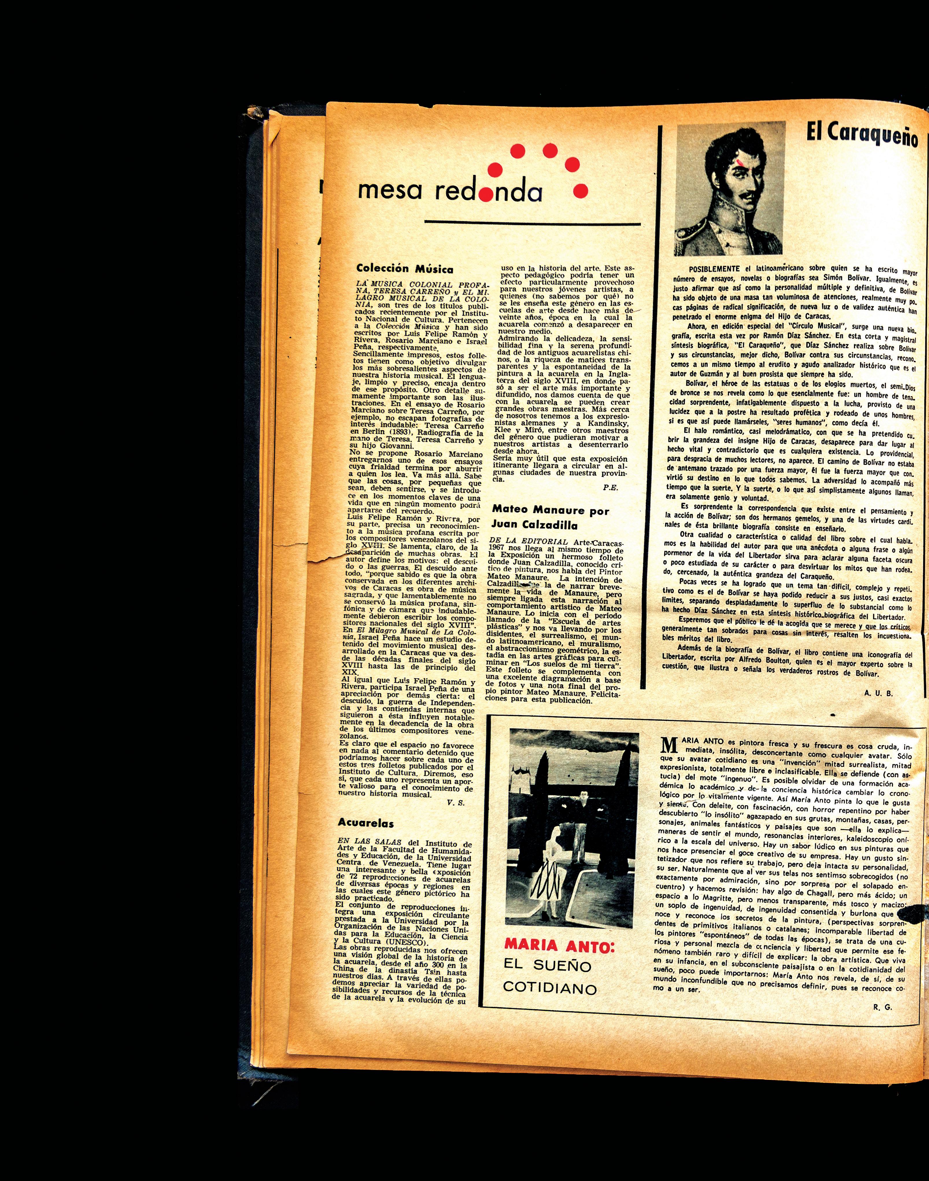 I spent many years at Venezuela’s National Library looking into dozens of boxes of neglected and uncataloged archives. The microfilms usually had a distinctive vinegar scent. Each year, the library’s conditions got worse. Some of the rooms with bookshelves didn’t even have lightbulbs. There was no running water in the bathrooms. The elevator was always out of service. The AC didn’t work— in 90° weather. Many of the newspapers I consulted were designed by Karmele Leizaola, and I was not aware of it.