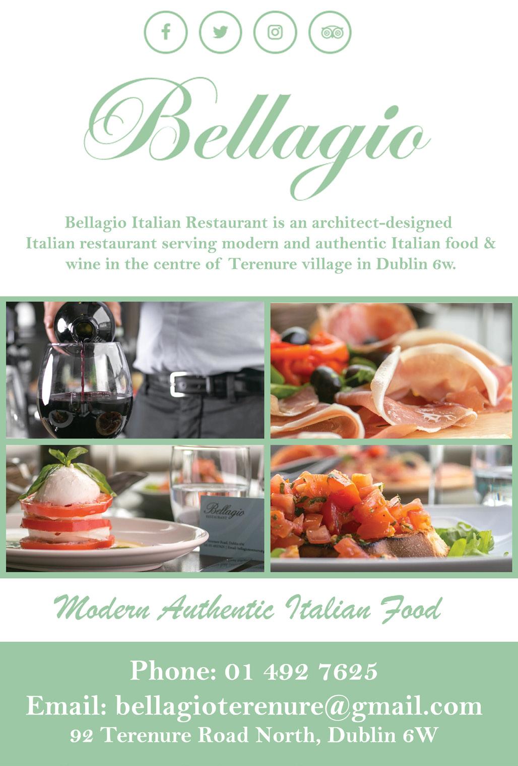 Bellagio Italian Restaurant is an architect-designed Italian restaurant serving modern and authentic Italian food and wine in the centre of Terenure village in Dublin 6w. Relax and enjoy delicious food, a truly delightful atmosphere and exceptional service.