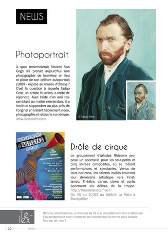 Photoportrait à quoi ressemblerait Vincent Van Gogh s'il prenait aujourd'hui une photographie de lui-même en lieu et place de son célèbre autoportrait (1889 - exposé au musée d'Orsay) ? C'est la question à laquelle Tadao Cern, un artiste lituanien, a tenté de répondre. Avec l'aide d'un ami ressemblant au maître néerlandais, il a tenté de s'approcher au plus près de l'original en mêlant habilement vidéo, photographie et retouche numérique. www.tadaocern.com