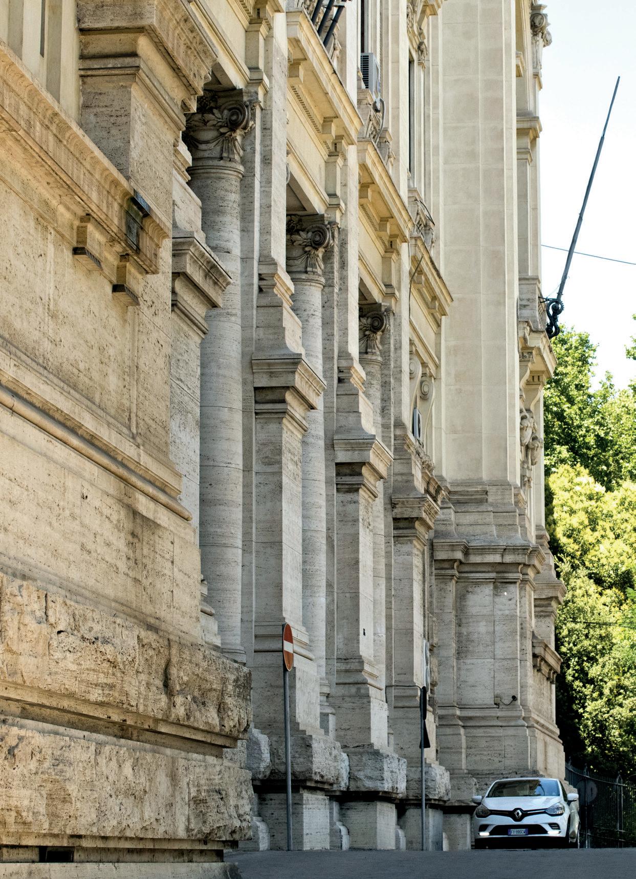 del ministro delle Finanze Quintino Sella a cui è dedicato il monumento di Ettore Ferrari. Dopo la realizzazione delle prime sedi lungo l’asse che unisce porta Pia al Quirinale, luogo ricco di valenze simboliche per la nuova nazione, una seconda serie di edifici per la pubblica amministra zione aveva trovato collocazione in diverse zone della città14, a seguito di una complessa istruttoria compiuta dalla commissione Peano (191011)15. Gli incarichi di progettazione affidati direttamente dal Ministero dei Lavori Pubblici erano assegnati ai più affermati esponenti della scena professionale e culturale romana. Tra gli altri viene varata la realizzazio ne del ministero degli Interni al Viminale commissionato a Manfredo Manfredi, architetto cui era stato assegnato il completamento del Vit toriano dopo la morte di Giuseppe Sacconi, insieme a Pio Piacentini e Gaetano Koch, di quello della Marina (1914-28) tra il Lungotevere e la via Flaminia disegnato da Giulio Magni, e di quello di Grazia e Giustizia su progetto di Pio Piacentini nel rione Regola.