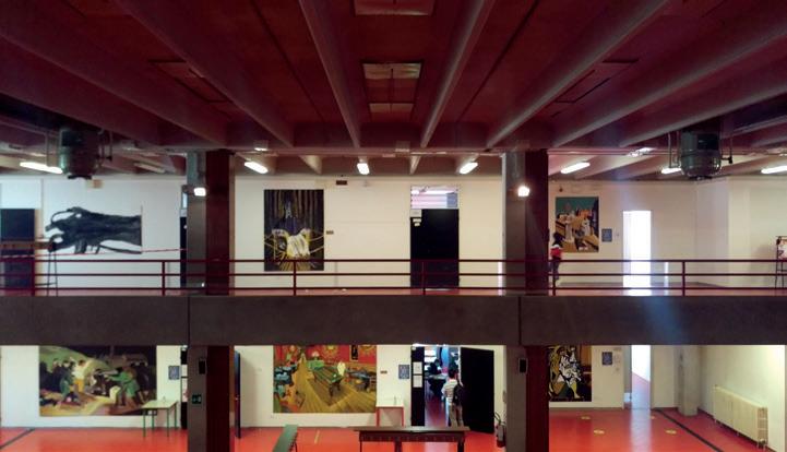 Bissuola: interno della scuola. A soffitto il tamponamento dei lucernai. Fotografia 2021