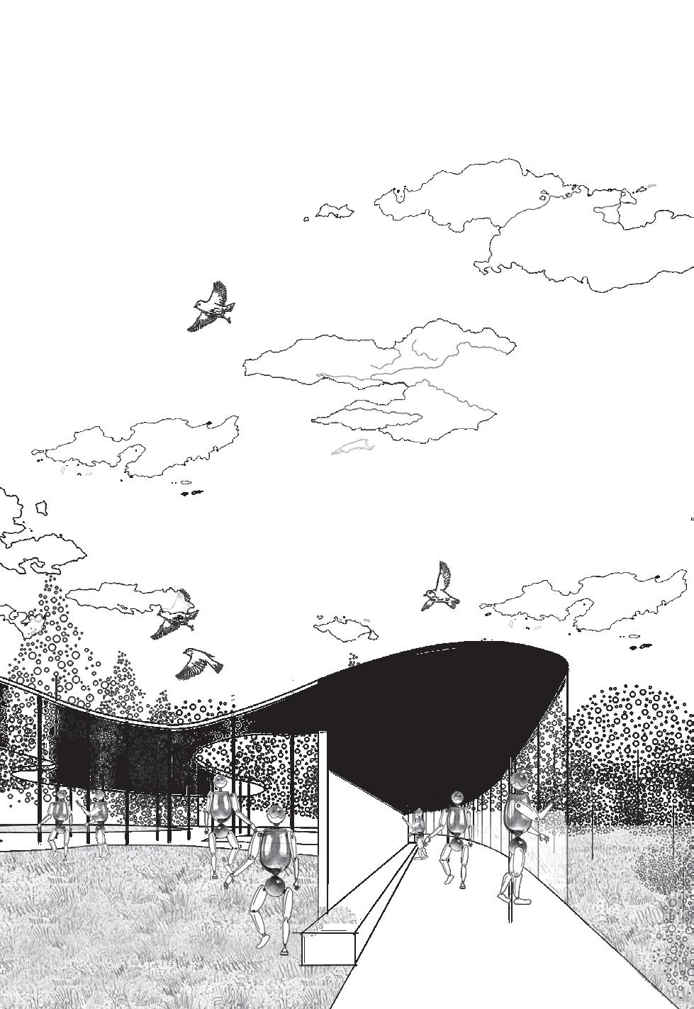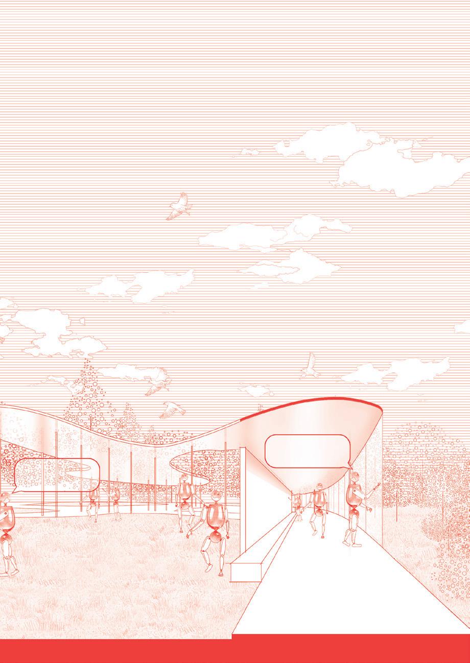 3. metaphorically characterizes the relationships between humans, architecture, and nature by the robots and dialogues, to show that humans seem to be passive recipients, underestimating the response from users and involved creatures.