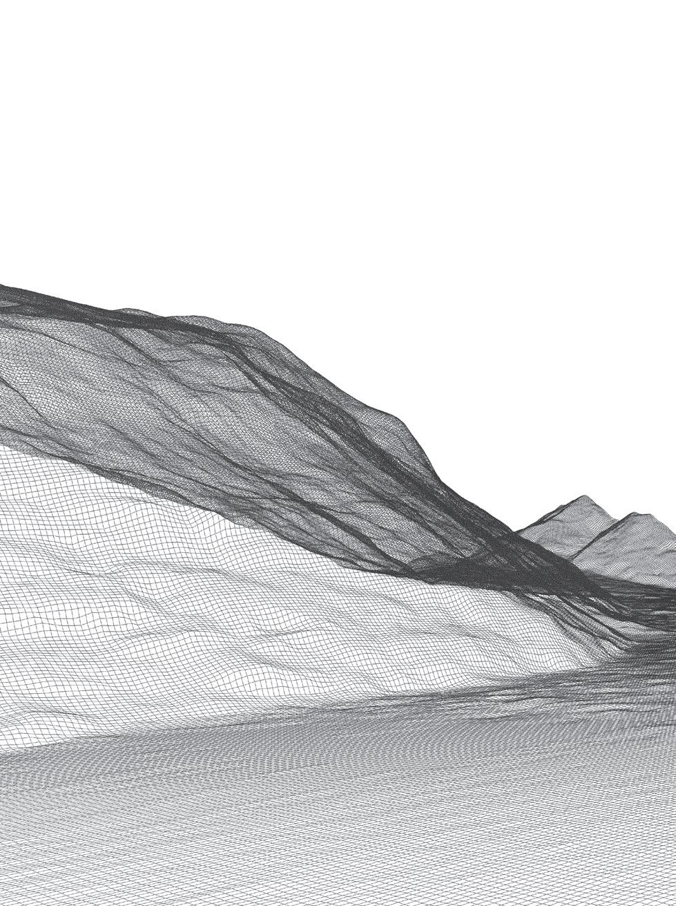 To section means to trace a precise cartesian system over a map, cutting along a predetermined line perpendicular to the plan view to reveal elevation, depth or structural and material composition. The base plans, in this case, are four: the first is an extract from the current official Swiss national cartography (it describes the present situation), the second is a combination of historical cartographic sources and aerial photographs (it describes the past situation), the third and the fourth are schemes of the assumed new interventions and gradual expansion of some islands (they describes the future situation). In the second part of the drawing process, 25 sections— one every 50 meters—cut the four maps. They focus on the relationship between earth (delta) and water (lake or channels), searching for the change of their size, depth and form, while omitting other elements, like buildings, roads, plants. The length of sections (2,5 km) grasps a huge scale of the landscape (going from one mountain to the opposite one of the valley), and refers to a dimension where human activity and geophysical forces are on the same level: dealing with natural processes implies that we can no longer conceive a palimpsest on which only the anthropic scale could find place and only man’s action leaves traces. Following Corboz (1983) the territory as a palimpsest is overwritten time after time, in interaction with previously generated spatial realities. In this sense, the renaturalization intervention is questioned through a system of sections that aims to capture the ever-changing morphologies and the dynamics of landscapes, navigating between scales and time.