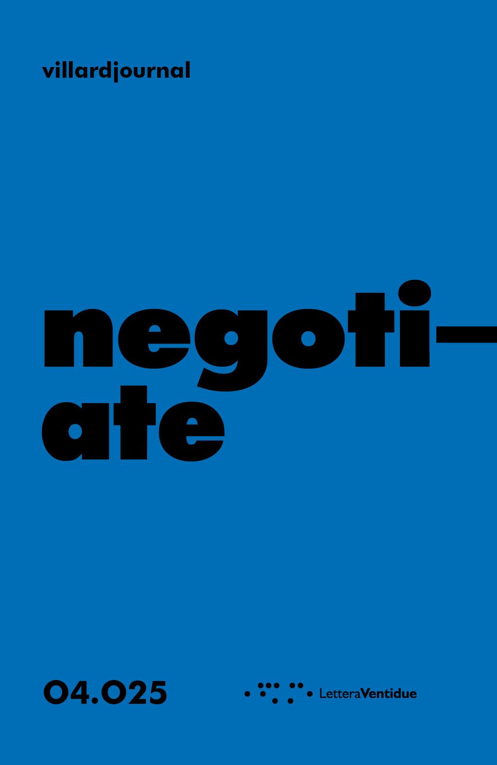 abstract The etymology of the word suggests an active state of being: from Latin neg (not) -otium (ease, leisure), negotium meaning also occupation, affair, be it public or private. Today, the word is mainly used to indicate a continuous confrontation with something considered as ‘other,’ a confrontation between beings, ideas, an act of exchange, of communication, that always implies the mutual interest in finding a common ground.