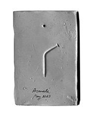 abstract I have started collecting nails in Venice. At least one every day kept showing on the way somewhere, probably because of constant restoration works in the city. They are crutches of Venice and are one of the few things that get replaced in buildings all the time. Nails are not usually considered in preservation processes, yet they are fundamental joints in construction that solve the negotiation between various materials. This brings on the question of heritage: to what scale do we keep architectural elements authentic? There are exceptional examples, when the nails are being forged following the form of the old ones, such as for the dome of the Basilica di San Marco. All the nails I have collected are from different periods, yet they carry the same function. Therefore, in order to equalize them, they had to be represented as typology. The clay casts have been made to give them the same language. Each of the clay plates serves as the orthogonal projection plane for the nails. The section shows the nail in its length and its specific bending, making the whole collection look like an unknown alphabet. The plan shows the nail hole’s diameter in the plate. The hole resulting from the nail on the wall is a known trope of a trace of something that is no longer there.
