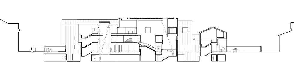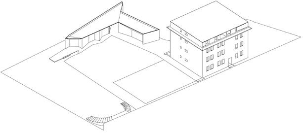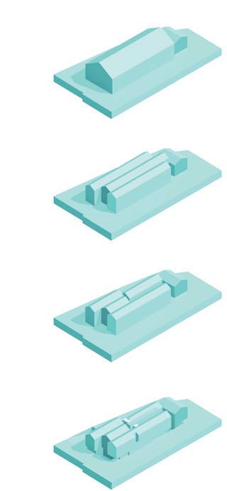 originarie con l’aggiunta di piccole aperture chiaramente distinte mentre un livello in più viene realizzato facendo affiorare un nuovo volume orizzontale oltre la linea di gronda. Intorno a questo intervento il progetto urbano si concentra sulla messa a sistema di percorsi pedonali che attraversano l’intera area, differenziandoli tra quelli carrabili con i parcheggi disposti su un lato e quelli pedonali che vengono portati all’interno del parco.