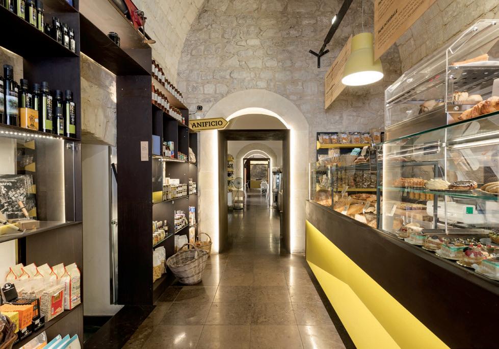 Ospitato nelle scuderie del settecentesco palazzo Di Quattro, a Ragusa Ibla, il locale dello chef Ciccio Sultano è un bazar con i banchi per la vendita del pane, della pasticceria da forno, della caffetteria-cocktail bar e dei migliori prodotti freschi e confezionati dalla Sicilia e dal mondo. Annesso al bazar, il ristorante dispone di tre sale e una grande cantina. La successione degli spazi, tutti disposti in asse, si conclude alle spalle di un grande arredo-fondale scenografico, con le cucine. Materia centrale del progetto è la luce.