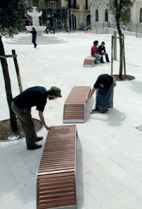In una piccola piazza nella parte ottocentesca della città, di fronte ad una scuola recentemente rinnovata, il progetto propone oltre ai necessari interventi di ripavimentazione e di illuminazione, uno spazio pubblico continuamente riconfigurabile secondo i desideri dei suoi abitanti: tutte le sedute sono infatti delle panchine rotanti incernierate ad una estremità, che gli abitanti possono spostare secondo le proprie esigenze. Per sedere all’ombra degli alberi nei giorni più caldi dell’anno, o al contrario al sole in quelli più freddi, per rivolgersi verso la scuola in attesa di un figlio che sta per
