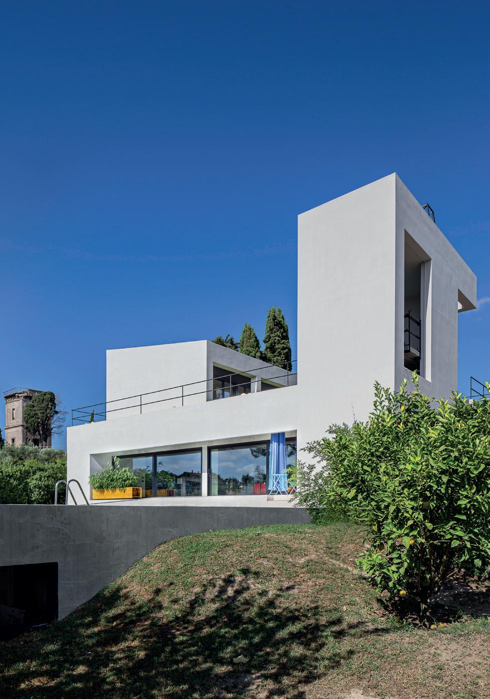 da questo complesso collocato nelle immediate vicinanze della casa e che oggi è in stato di rovina, La Villa è stata pensata secondo un impianto a patio, dominato dalla presenza di una torre, che contiene una scala che connette i vari livelli di cui la casa si compone. Per assecondare l’andamento del terreno, La Villa è concepita come una costruzione terrazzata, dove ciascuno dei tre piani è coperto da un giardino pensile. La casa si affaccia su una piscina costruita negli anni ottanta, che è stata restaurata e integrata nel progetto.