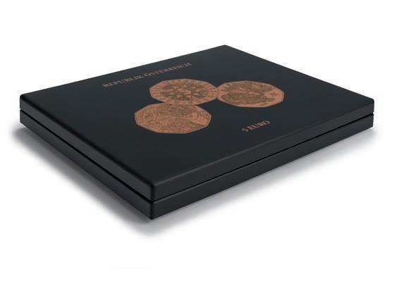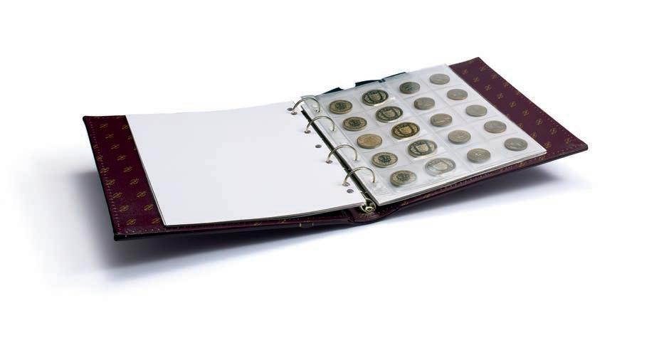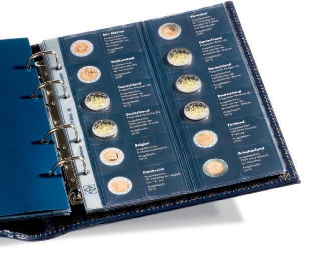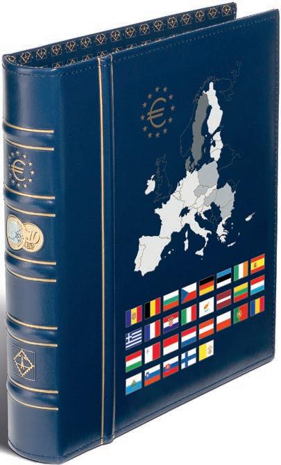 Voor maximaal 180× 2 euromunten of 9 Vista-muntbladen, kunstleren omslag met reliëf in omslag en rug, geschikt voor alle Vista-muntbladen of Optimamuntbladen