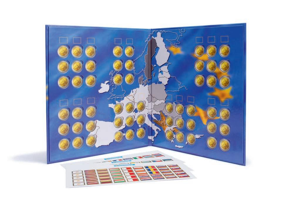 Met uitsparingen voor 57× 2-euromunten, incl. stickerset vlaggen