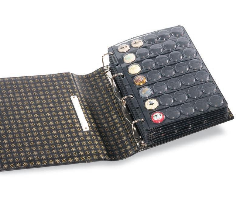 Bladen met zwarte draagfolie, voor 210 champagne-caps, uitbreidbaar tot 9 bladen voor 378 champagne-caps, incl. 5 zwarte schutbladen