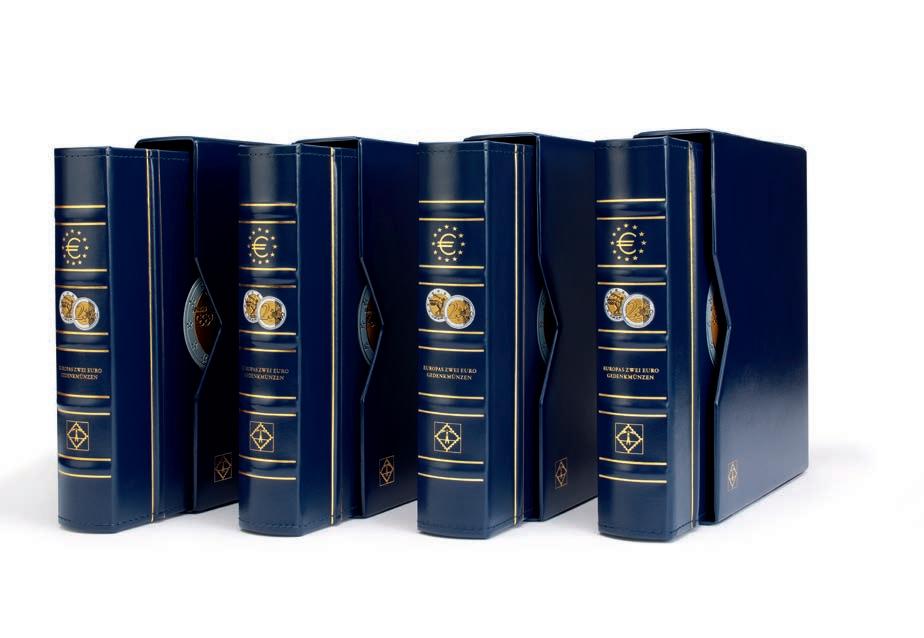 3 Optima-voordrukalbums Europa’s 2-euro-herdenkingsmunten Voor alle Europese 2-euro-herdenkingsmunten, inclusief de 5 Duitse muntplaatsen, voordrukbladen met muntafbeeldingen en achtergrondinformatie