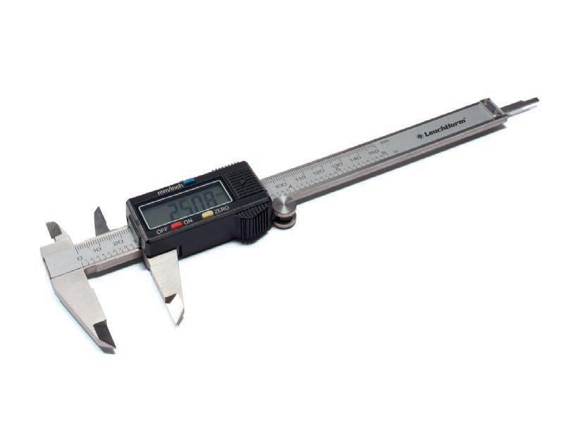 Digitaal, met lc-display, meetbereik van 0–150 mm, meeteenheid: 0,01 mm, nauwkeurigheid: 0,03 mm, verschilmetingen dankzij flexibel terugzetten naar nul mogelijk, maatvermelding in mm of duim ncl. batterij (1× LR44/AG13)