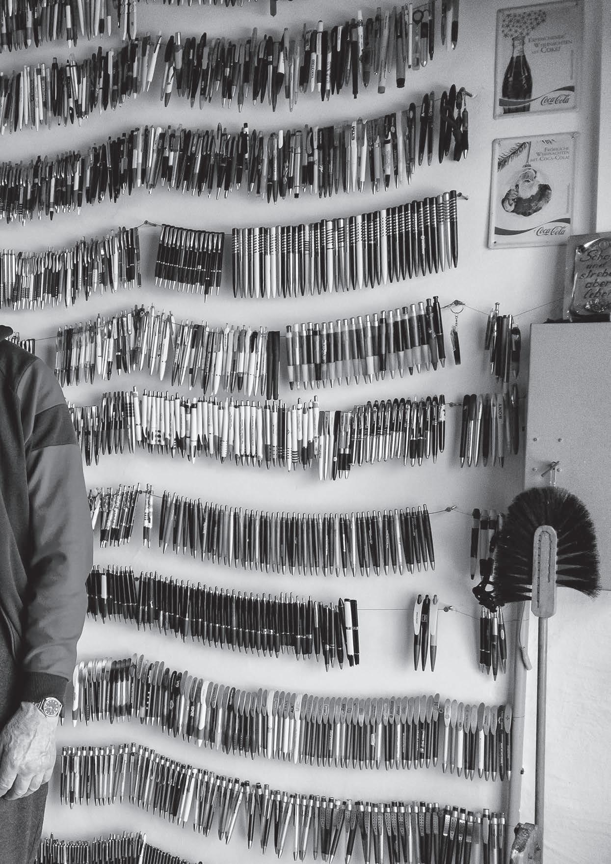 Frank bezit meer dan 14.000 verschillende balpennen.