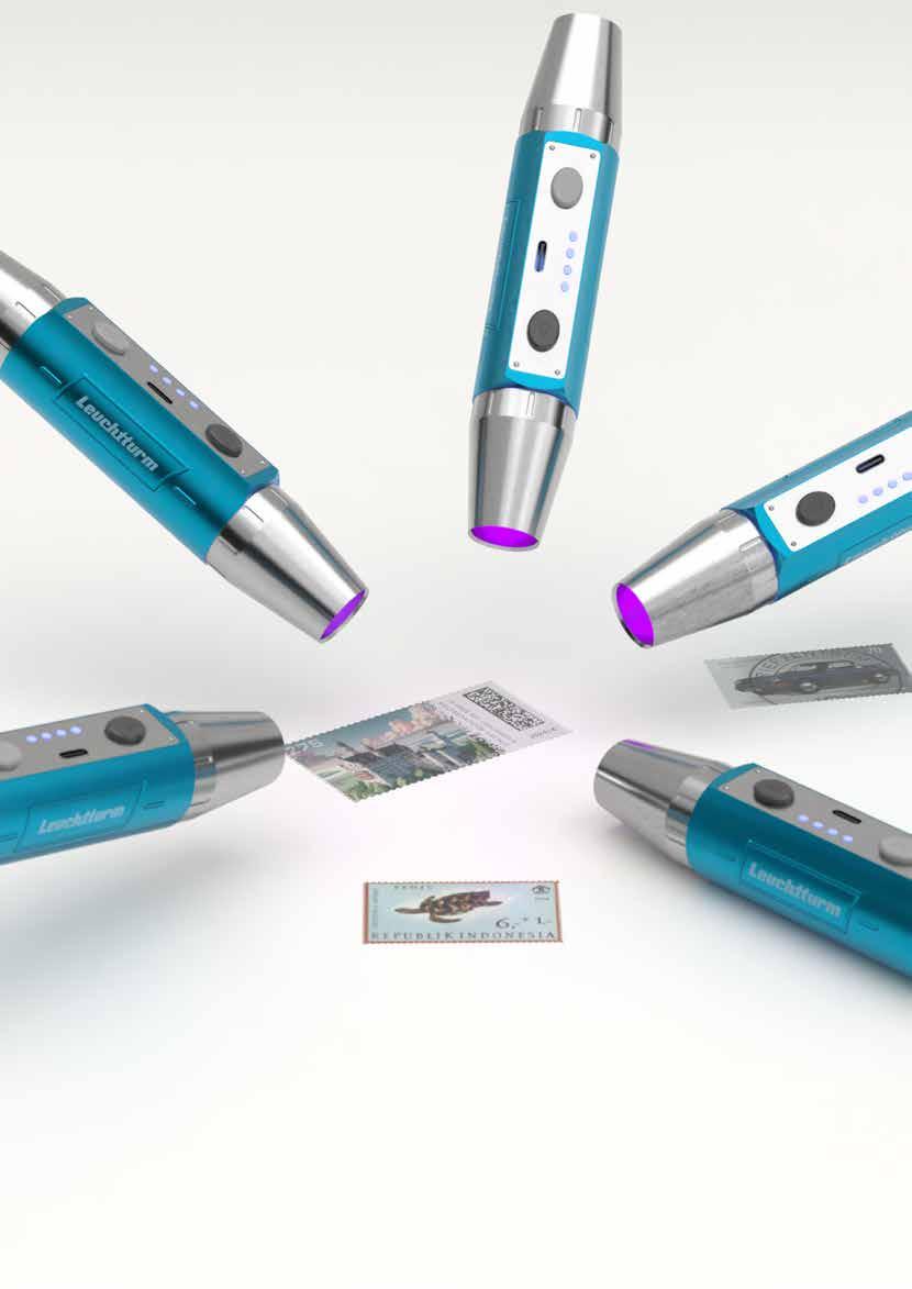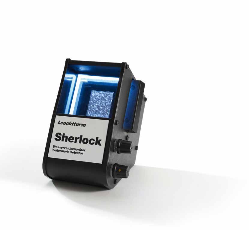 2 Détecteur de filigranes Sherlock Pour reconnaître les filigranes, irrégularités du papier, défauts de qualité ou réparations, 4 teintes de lumière différentes, luminosité réglable en continu, sans aucun produit chimique et sans danger pour les timbres, pour les documents jusqu’à 50 × 45 mm