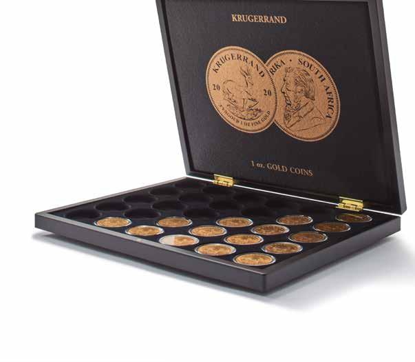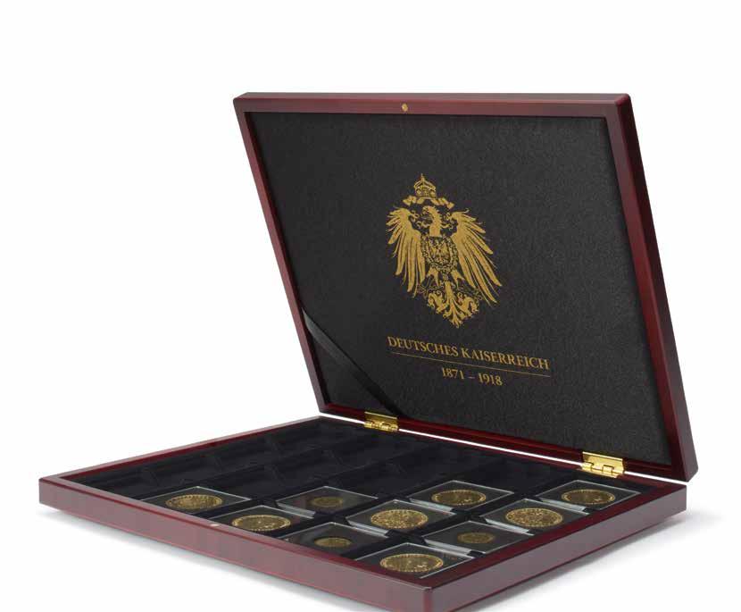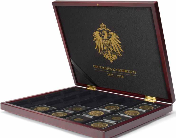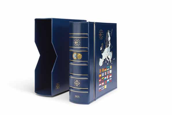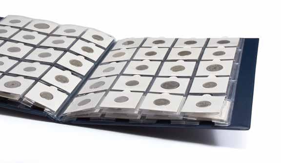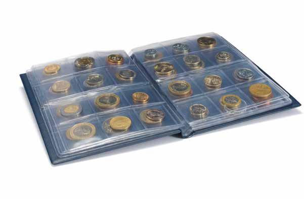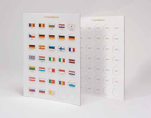 Vhodné pro 20 mincí na list, zlatý potisk, pevný karton včetně vkládacího okénka