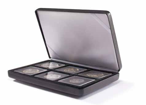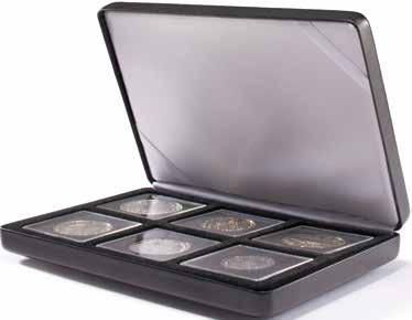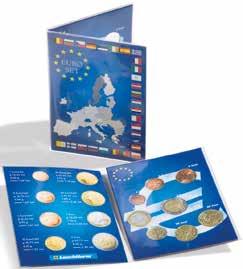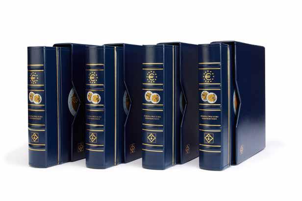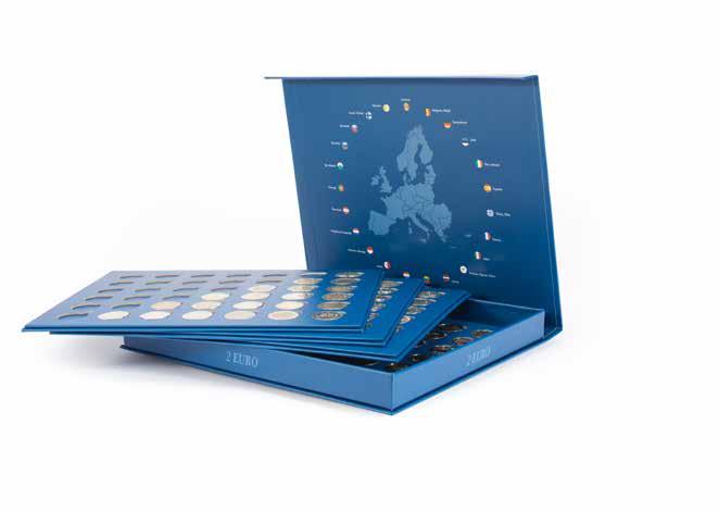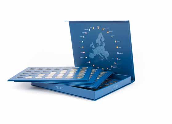 S 6 pevně vázanými pouzdry na až 48× 2eurových pamětních mincí, vložky z tvrdého PVC bez obsahu změkčovadel, ražení na obalu