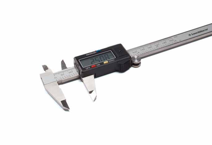 Digitální, s LCD-indikací, rozsah měření od 0–150 mm, jednotka měření: 0,01 mm, přesnost: 0,03 mm, možnost diferenciálního měření díky flexibilnímu nastavení nuly, s hloubkoměrem, měření v mm nebo palcích