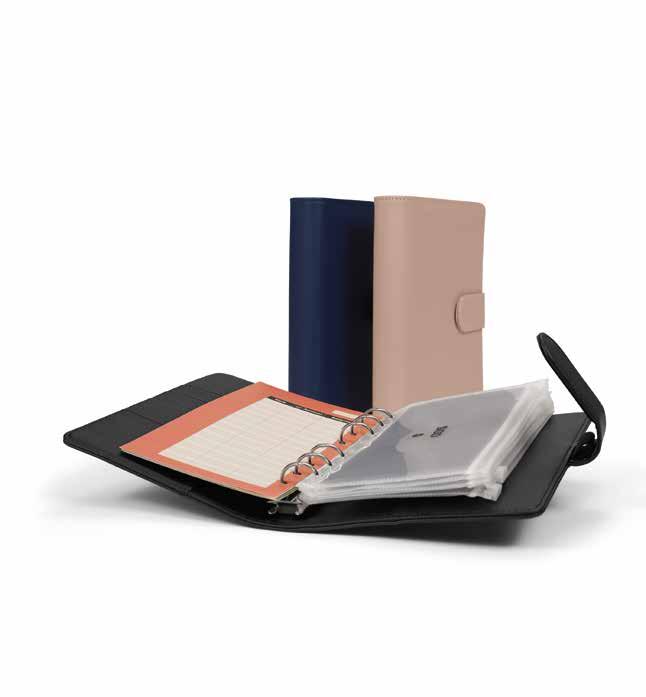 Kroužkový pořadač formátu A6, včetně 5 zipových obálek (tvrdé PVC), 2× samolepky a 5× rozpočtové listy + přehledy, magnetické zavírání