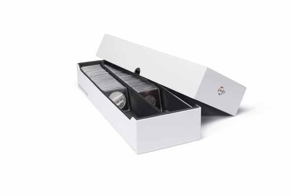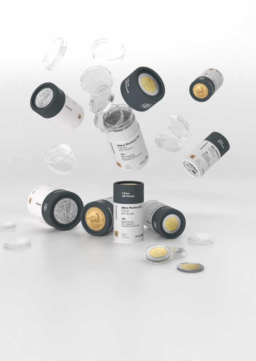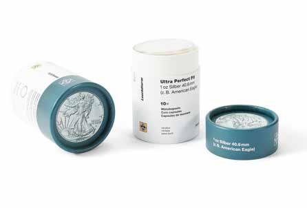 Inovace je patrná i v našich obalových řešeních: Oblíbené kapsle na mince Grips jsou nyní k dispozici v prostorově úsporném plochém balení. Naše kapsle Ultra Perfect Fit dodáváme v praktických, opakovaně použitelných kartonových tubách – chytré řešení pro skladování a organizaci.