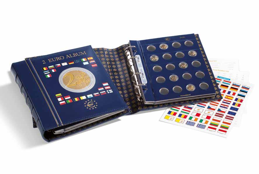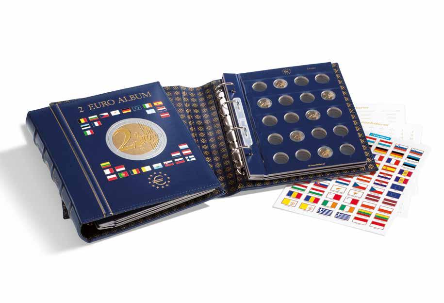 S vyraženými otvory pro 57× 2eurových mincí, včetně sady samolepek s vlajkou