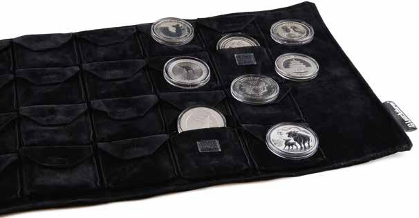 Textilní sametový materiál, 2 uzavírací pásky, pojme až 24 mincí (50 mm), vhodné také pro mincovní bublinky Quadrum