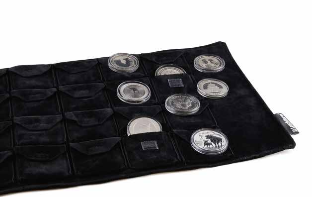 Velvet fabric, 2 closure ribbons, for up to 24 coins ( 50 mm), also suitable for Quadrum coin capsules
