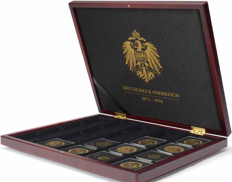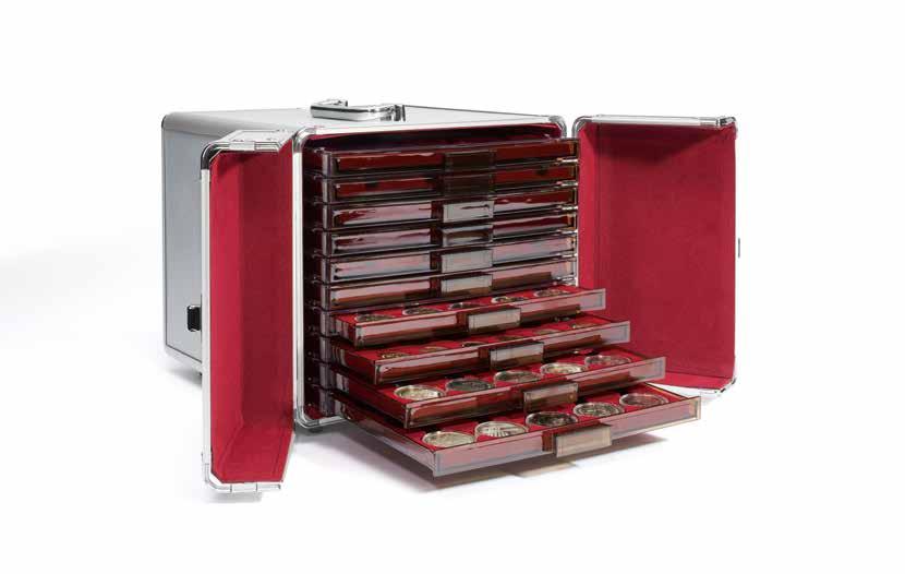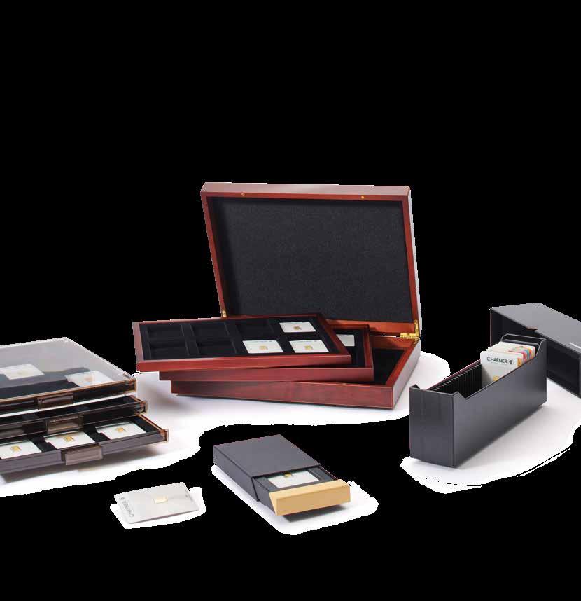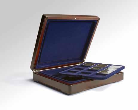 Para hasta 40 blísteres de lingotes de oro (86 × 54 mm), divisiones fijas, muescas de agarre en la tapa 65 × 90 × 300 mm Ref. 36 51 62 24.99 € inserto extraíble 90 × 23 × 140 mm