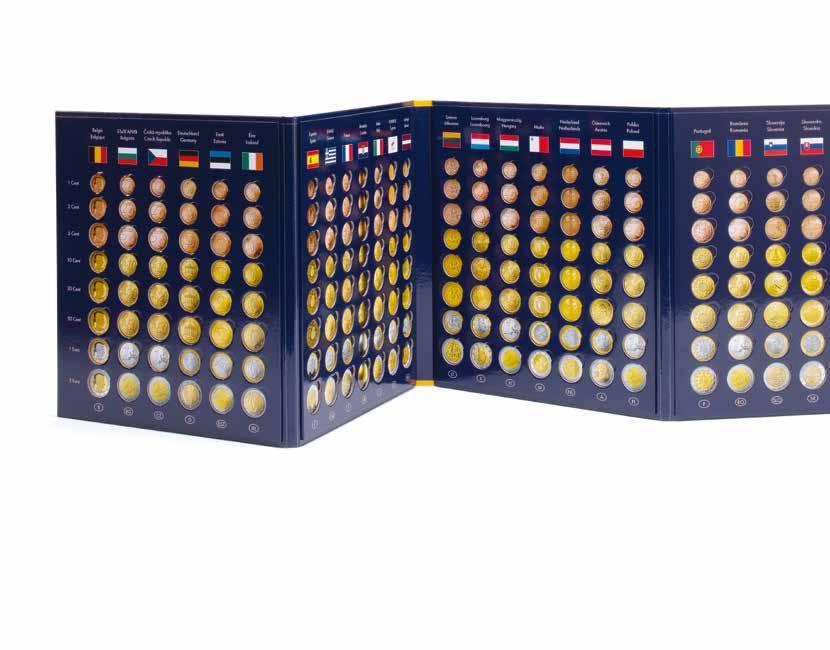 Con 14 fundas y hojas preimpresas para todas* las monedas conmemorativas europeas de 2 euros de 2018 a 2021