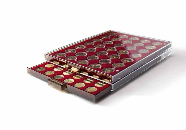 b 2 compartimento –para monedas de hasta 42 mm, incl. pequeñas tarjetas para inscripciones 52 × 52 mm