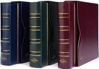 Kunstleren kaft, voor maximaal 15 hoesjes, 4-ringsmechanisme, incl. 5 Numis-bladen (Art. 33 85 71), geschikt voor geperste centen in staand of liggend formaat en 5 witte centen tussenlagen, incl. beschermende cassette