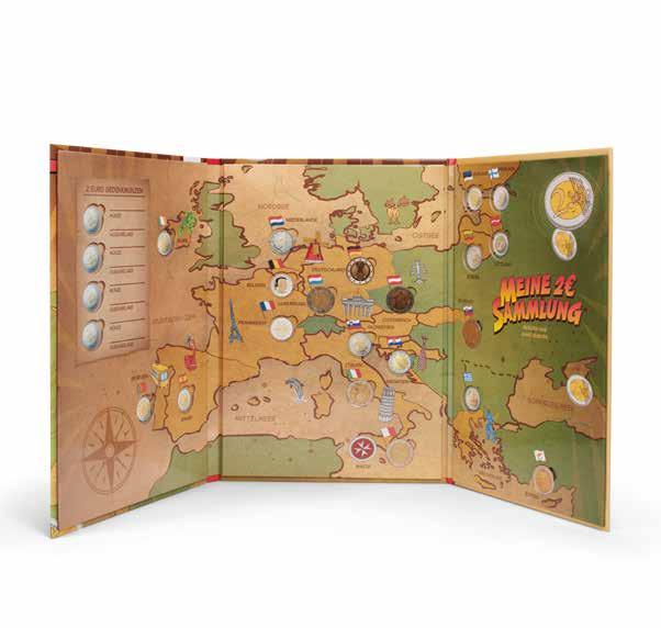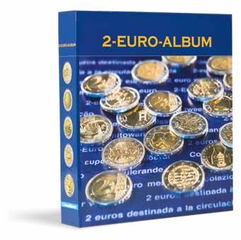 Met 6 vast ingebonden muntbladen voor maximaal 48× 2-euromunten, weekmakervrije vakjes van hard pvc, reliëfdruk op de cover