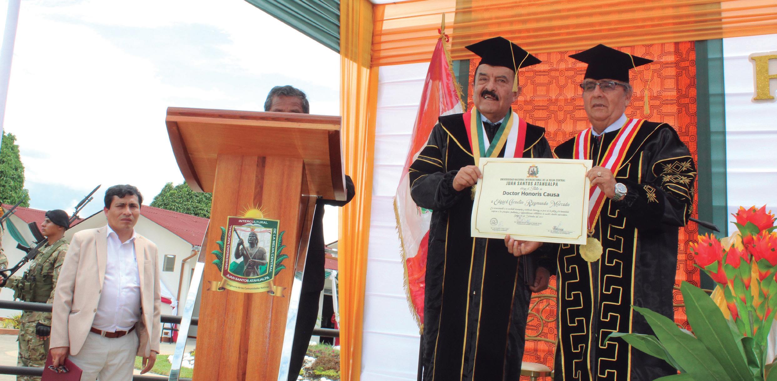 Ceremonia de Entrega de Grado de Doctor Honoris Causa, en reconocimiento a la labor legislativa a favor de la educación por la creación de la Universidad Nacional Intercultural de la Selva Central “Juan Santos Atahualpa” .