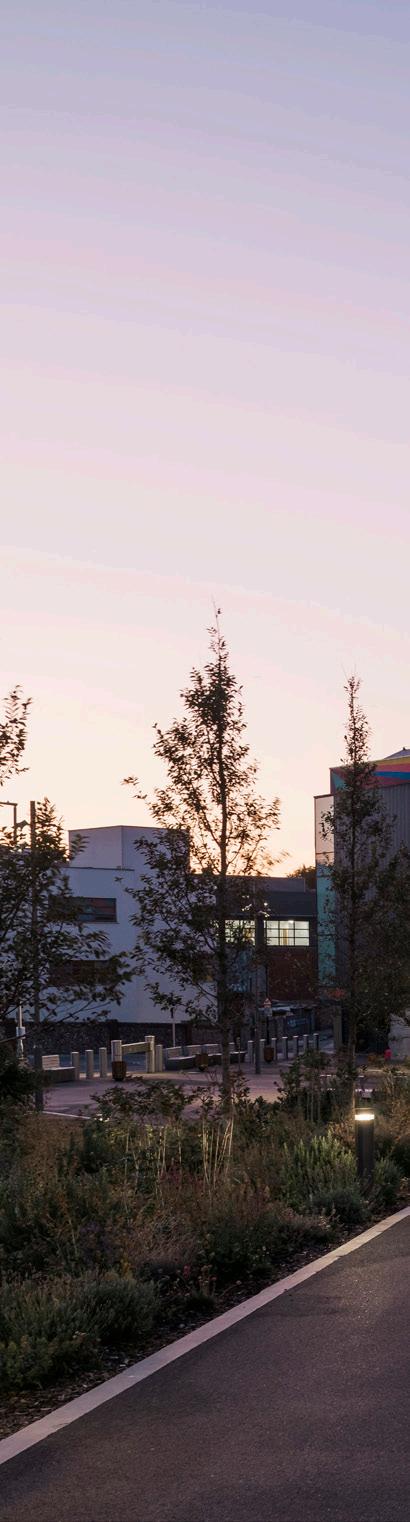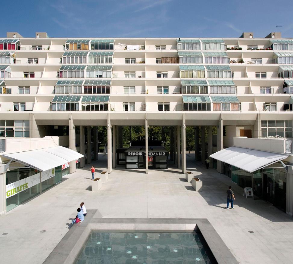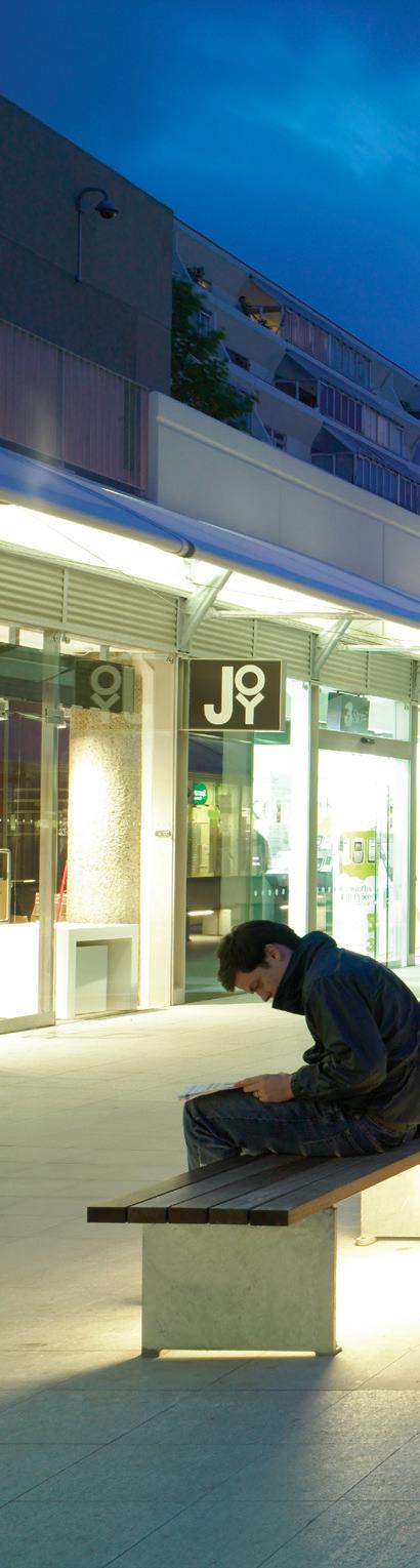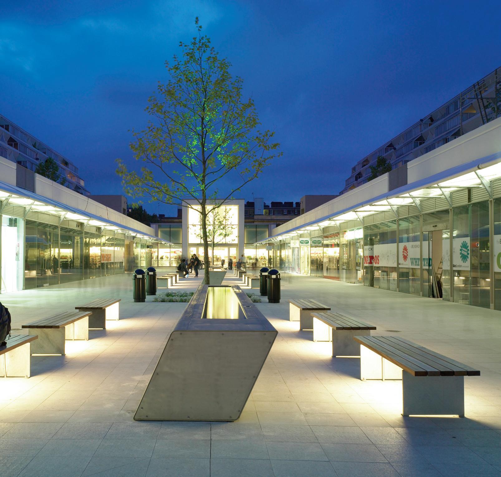 This pioneering Grade II listed medium-rise, highdensity, inner-city neighbourhood, designed by Patrick Hodgkinson in the 1960s, was severely run-down when we were invited to restore, repair and improve it. Our approach was to complete the original architectural vision whilst making contemporary interventions. The central shopping street has been upgraded with a new anchor supermarket, enlarged retail units and extended shop fronts to provide more attractive spaces for retailers. The width of the vast concourse has been reduced by adding glass walkways, canopies and central seating, creating a more active and intimate streetscape.