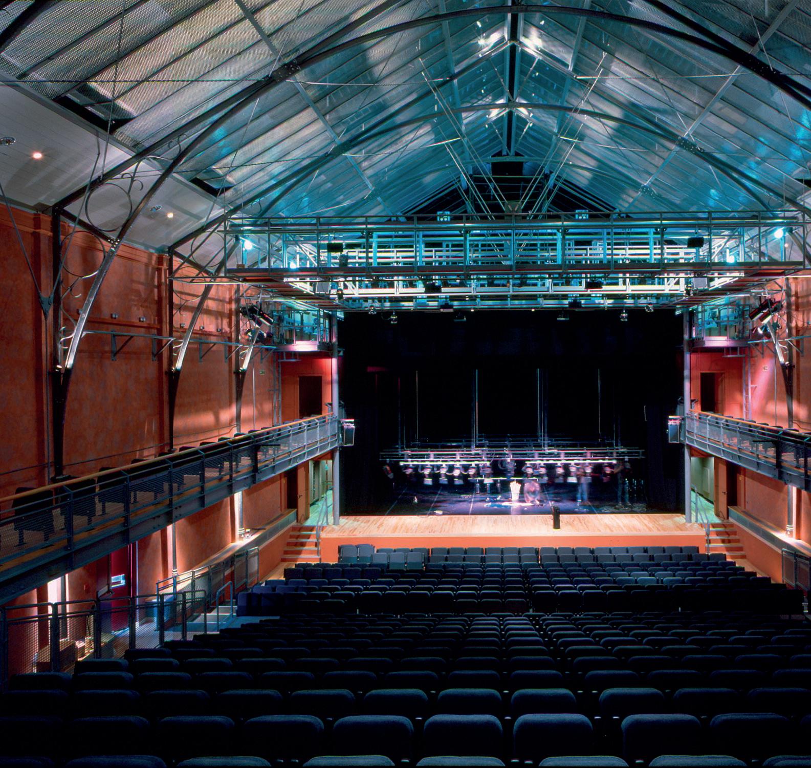 This competition-winning commission transformed this Grade II listed building into a 750-seat concert hall and multi-purpose public building. The scheme enables the performance space to convert rapidly from a fully seated to flat floor layout, and the acoustics can be varied to suit different requirements. A new ‘over-roof’ structure, supported by external columns, provides space for services and additional acoustic volume and retractable absorption panels. The design also allows for the future addition of a 200-seat and 500-seat auditoria for dance and drama.