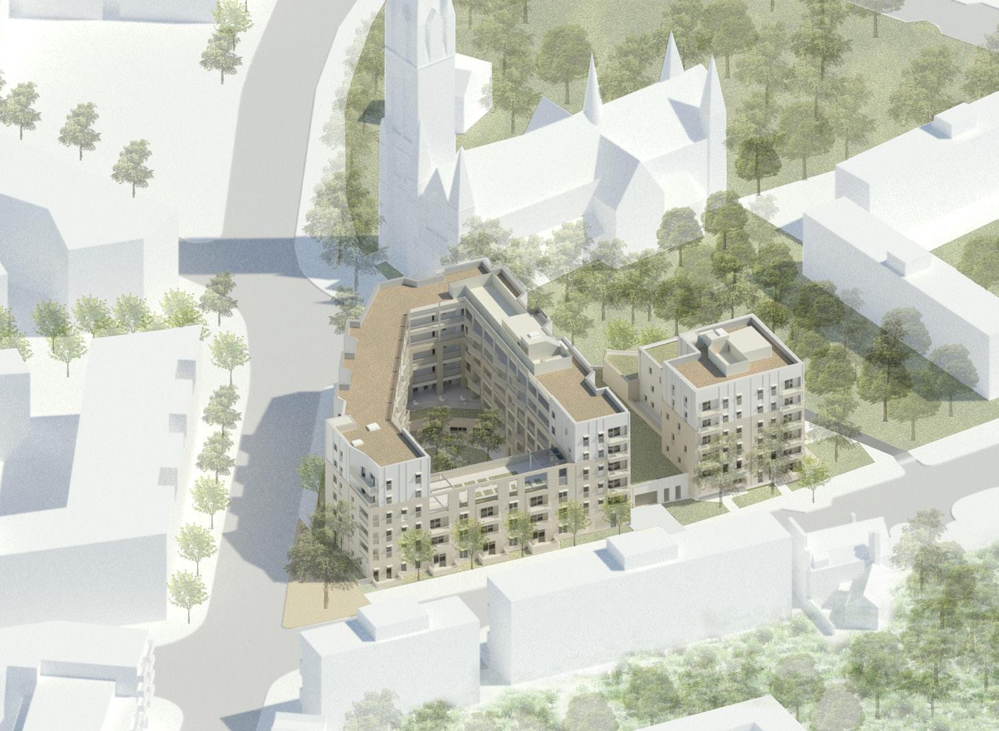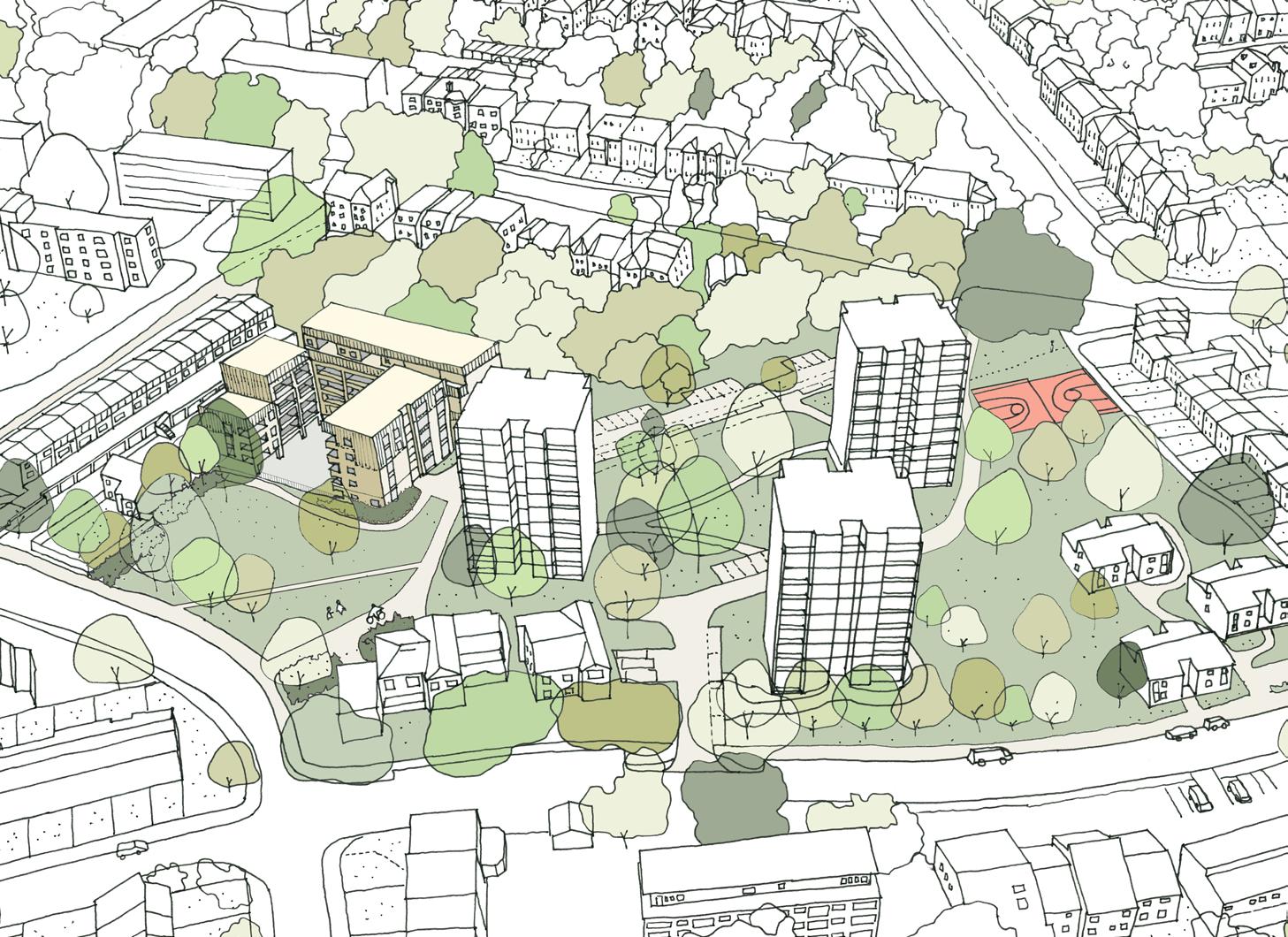 Creating 61 affordable, extra care homes alongside landscaped amenity spaces.