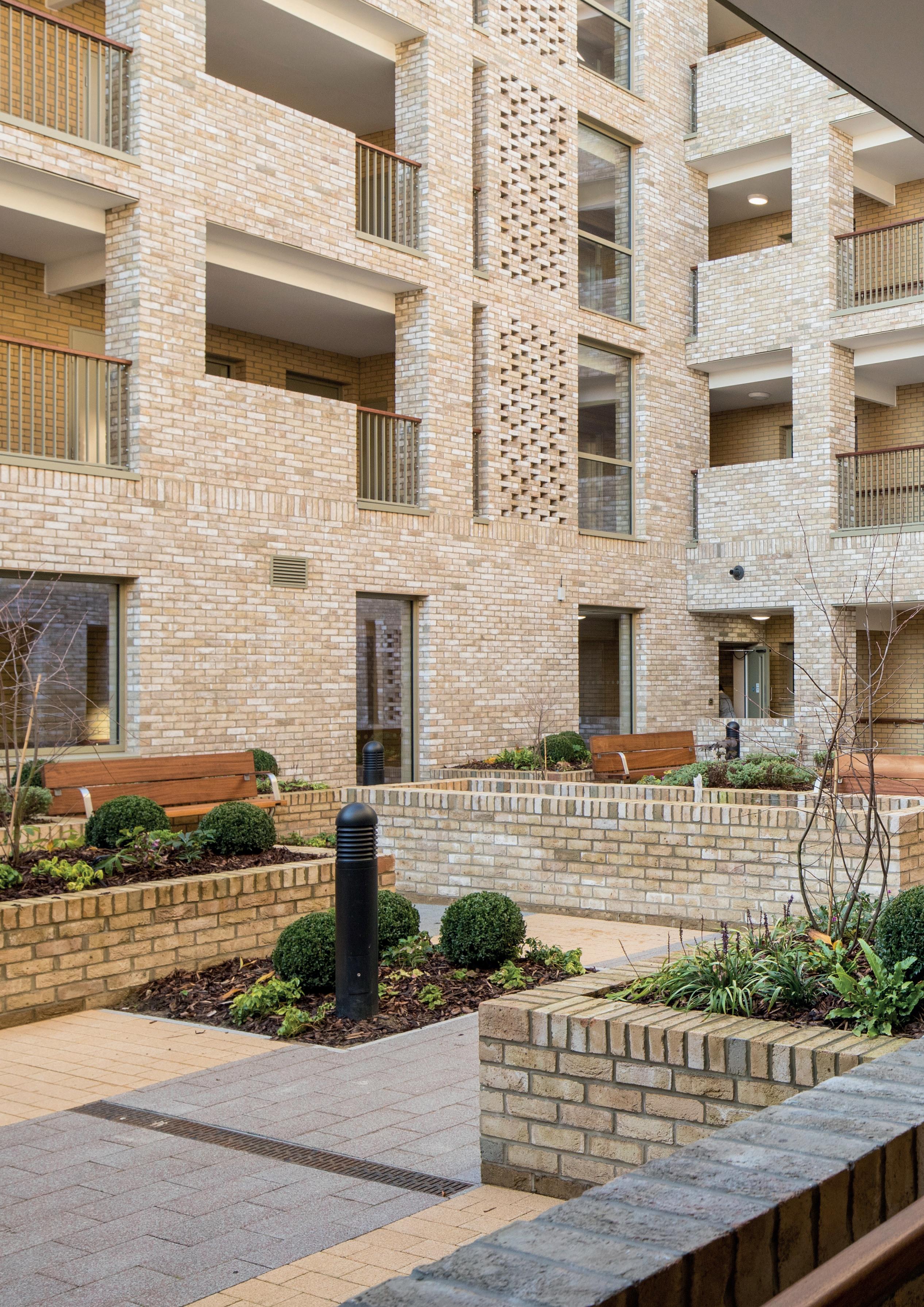 Working within the constraints of a tight urban plot, this scheme comprises 60 extra care homes within two new buildings, alongside integrated communal space. Being mindful that older people spend more time inside, the design is centred on the concept of bringing the outside in and all homes are dual aspect to provide views of the courtyards and neighbouring streets. Similarly, a new garden room offers a generous, light-filled communal space between the two courtyards, each of which has a different character to provide a range of physical and visual stimuli for residents.