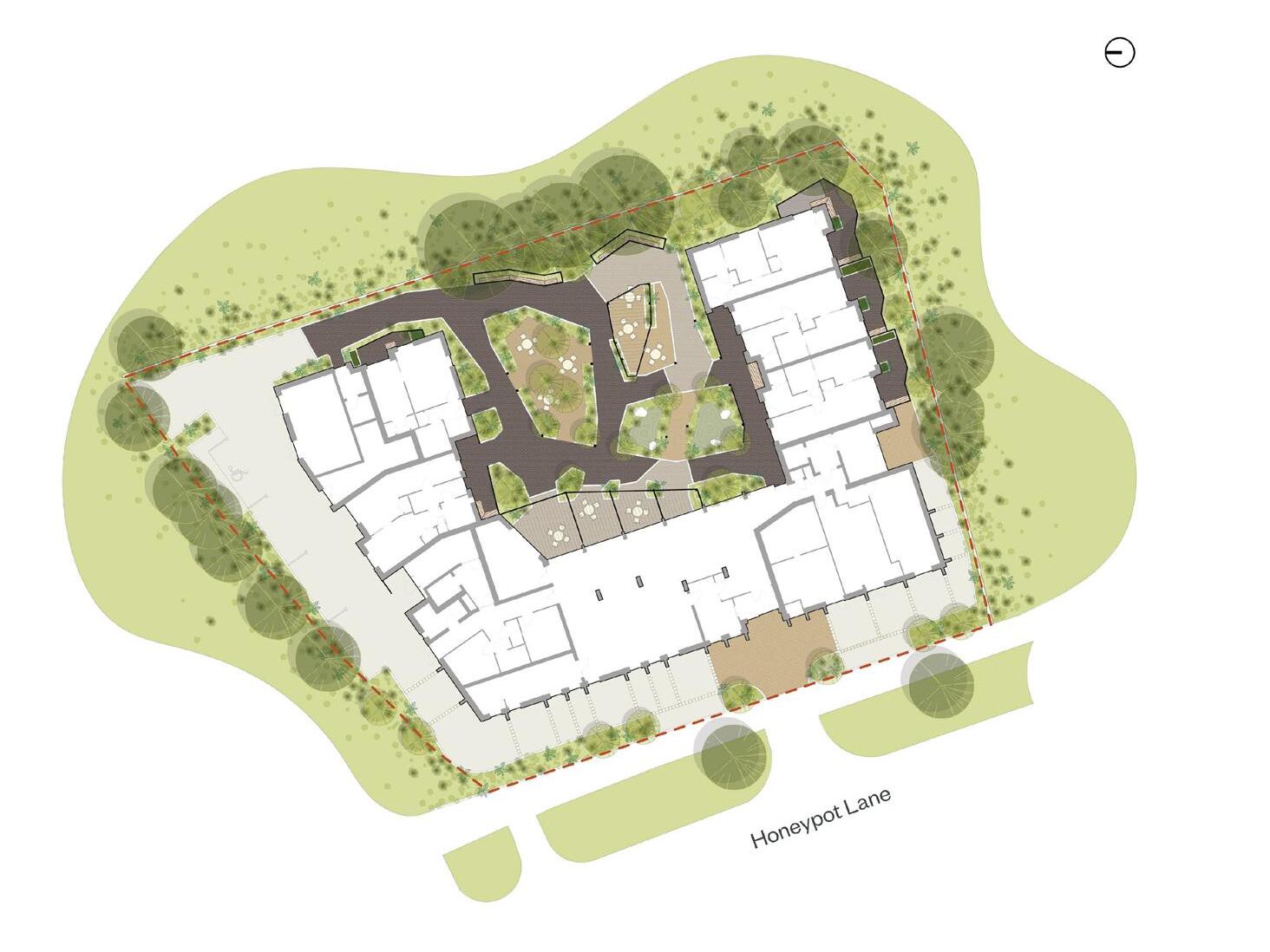 The homes are all dual aspect and designed in line with HAPPI principles, which includes maximising views into a central courtyard and surrounding parkland. The courtyard spaces will be used to offer a variety of sensory experiences to residents and visitors. Walking routes and allotments are located around the outside of the building to promote resident activity and a greater connection to nature.