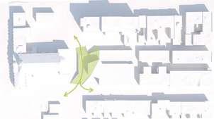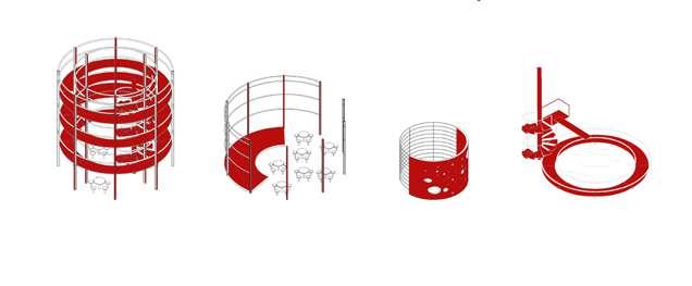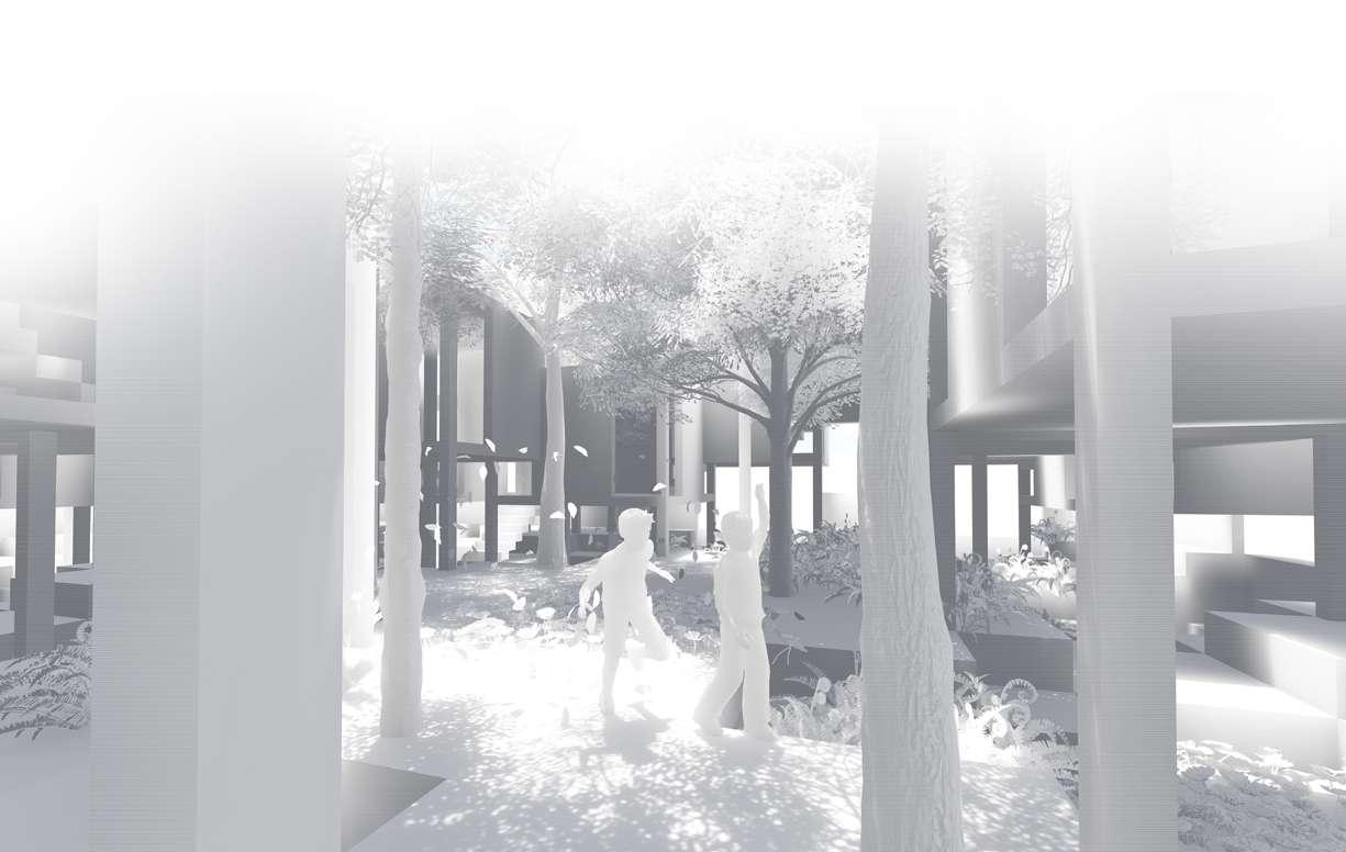 L’intention était d’exprimer la matérialité présente au Plateau Mont-Royal, en l’occurence la brique, matériau ouvrier, peu dispendieux et démocratique. Pour ce faire, un système paramétré de pivots superposant des briques entre elles, a été développé. La densité de ces pivots était définie par la topographie du Mont Royal, qui a été rationalisée et pixélisée.