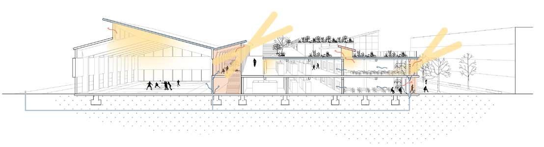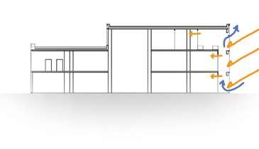 Atrium, cheminée naturelle, circulation de l’air Coupe détail de l’enveloppe du bâtiment