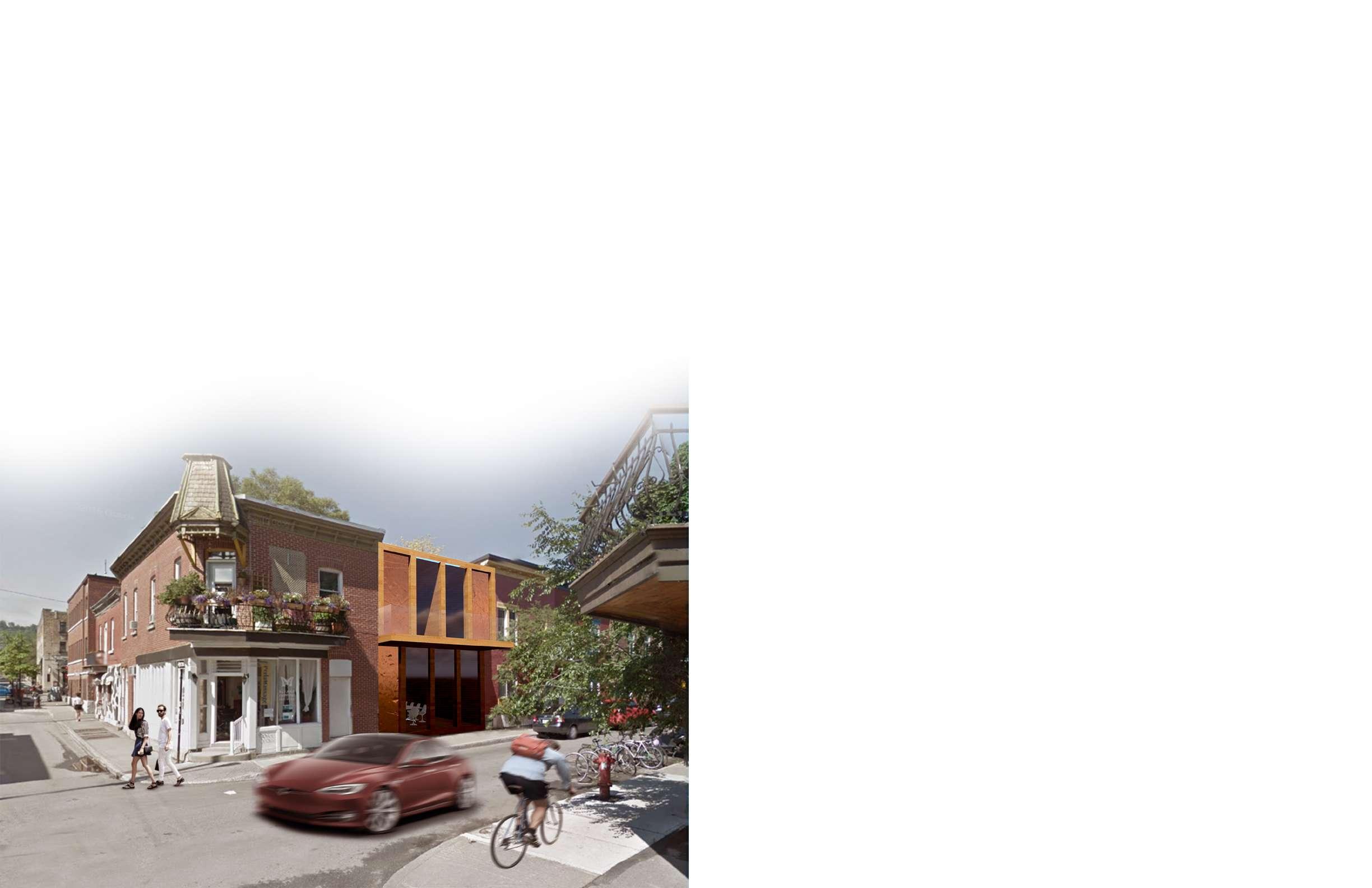 En collaboration avec Émilie Vandal-Piché, chargée de projet en architecture: production de dessins d’esquisse, conception, équipe technique, dépôt pour CCU, organisation d’une consultation de voisinage